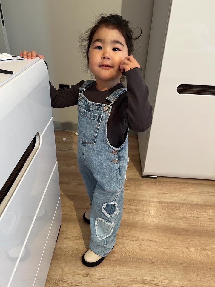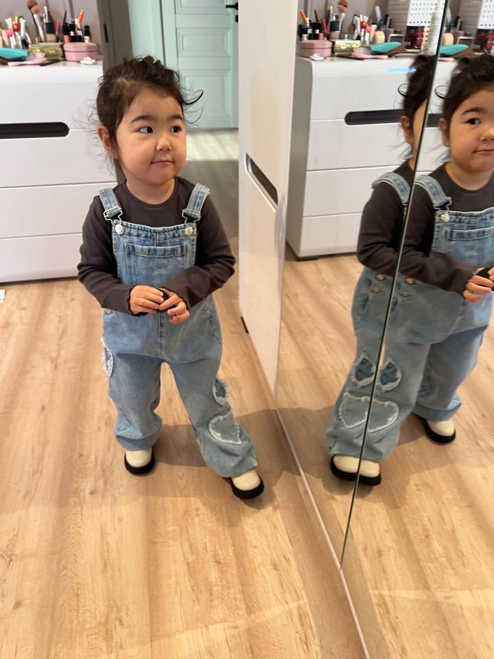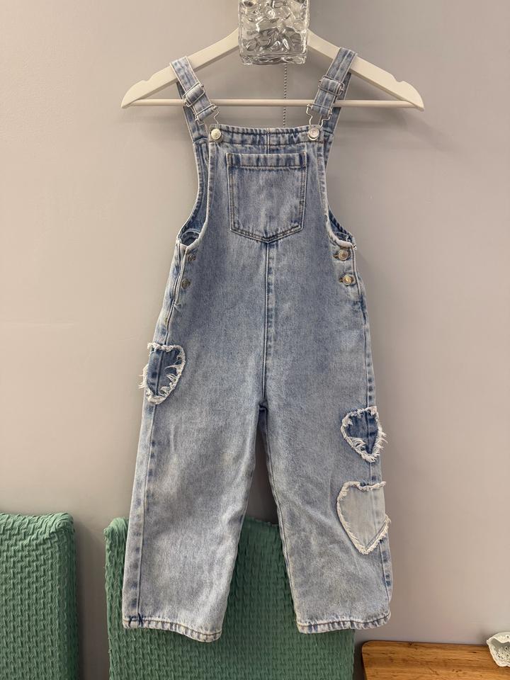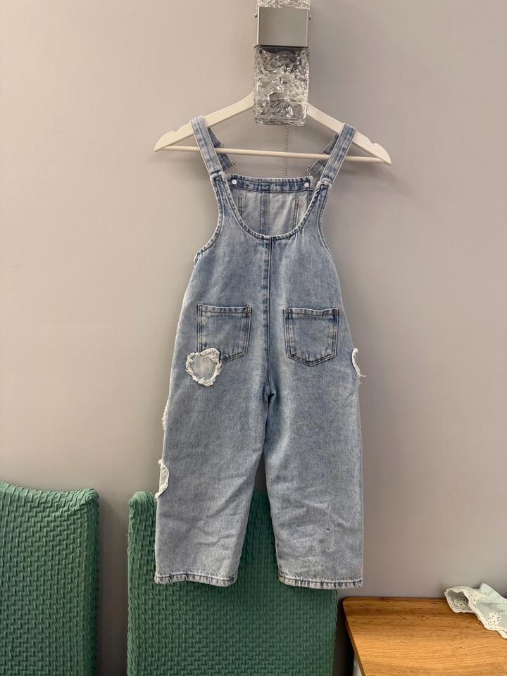 Красивый джинсовый комбинезон с сердечками Покупала в Мега Силквэй На 3-4 года Есть совсем маленькие пянышки, показала на фото Комбез очень милый и стильный Артикул: 594080