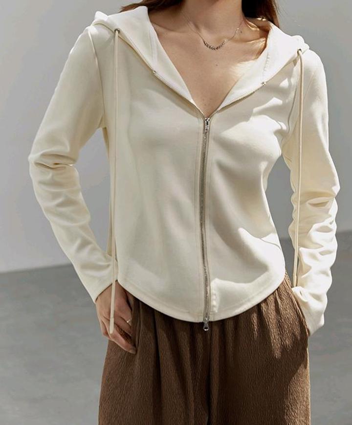Повседневный стильный свитер на двойной молнии с капюшоном, Женский осенний тонкий универсальный однотонный женский свитер с капюшоном. Артикул: 594200