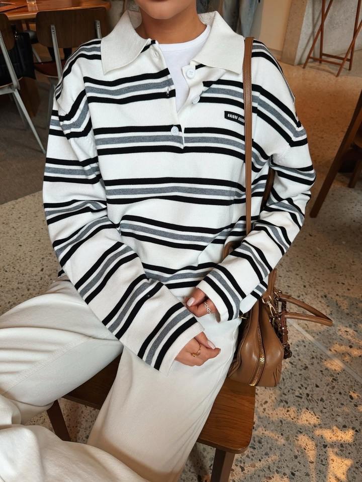 Поло-свитер Chia, белый в полоску. Купила за 28 тыс.тенге. Состояние отличное: без дефектов и без катышков. Артикул: 594273