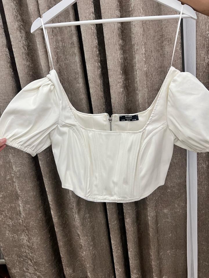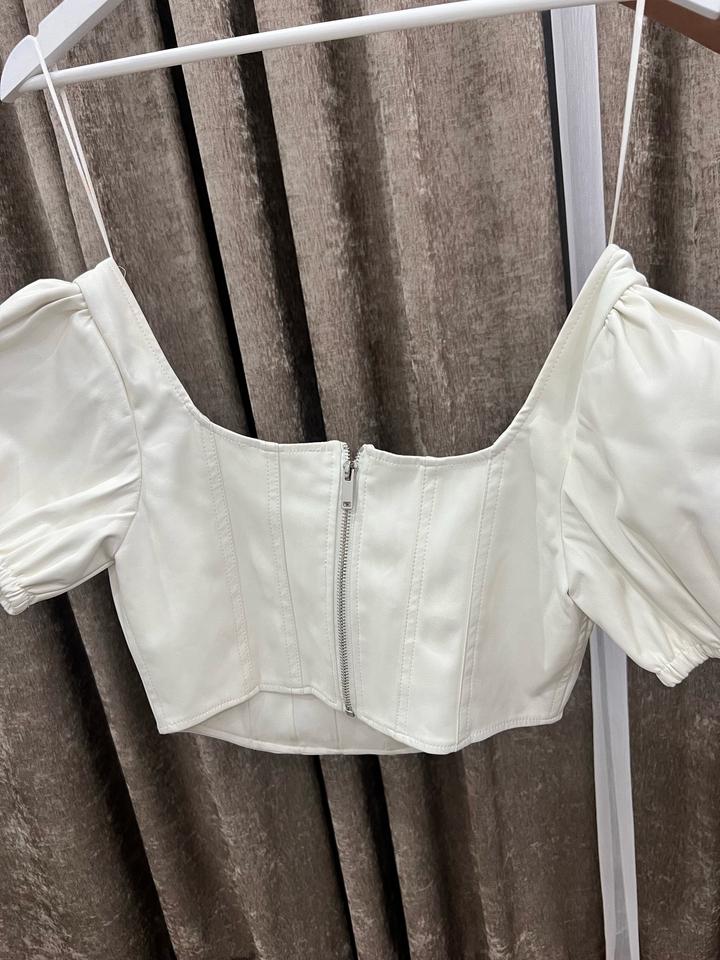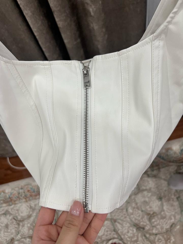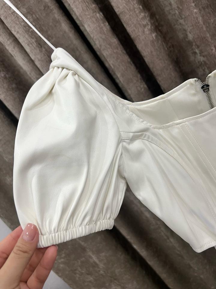Кожаный белый топ бершкаM