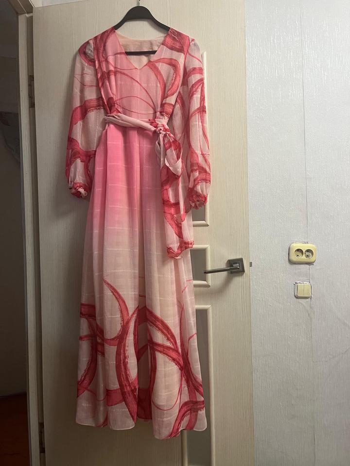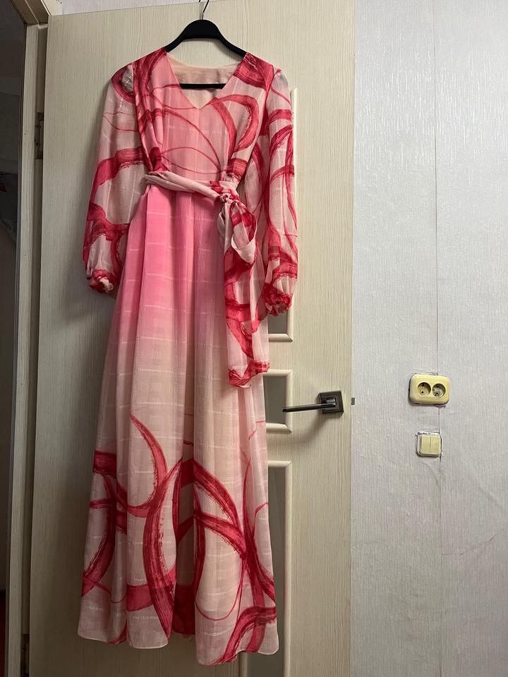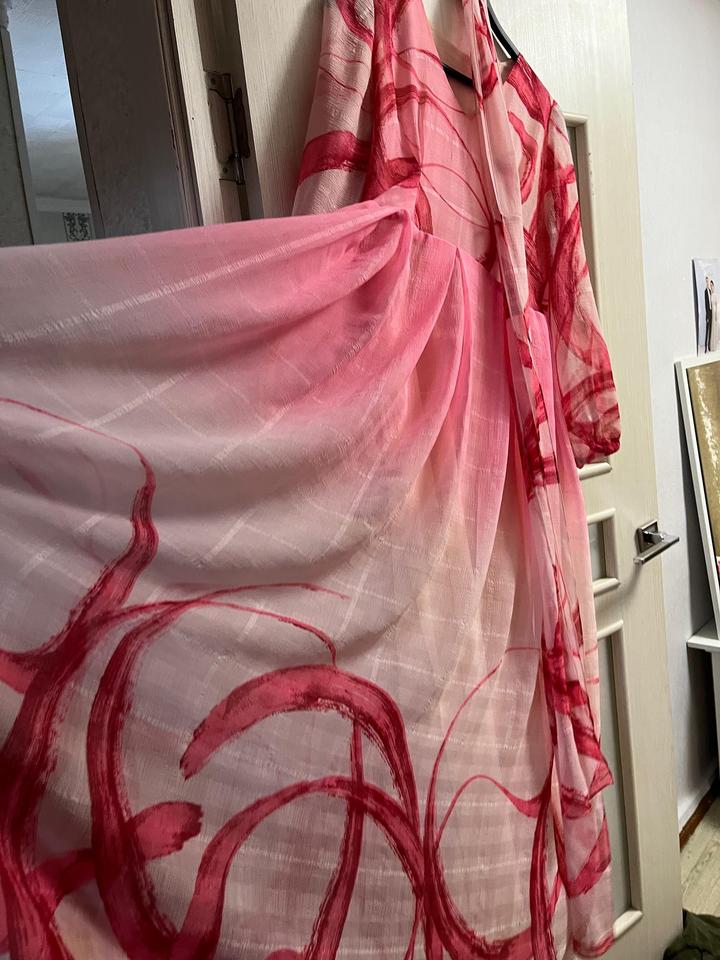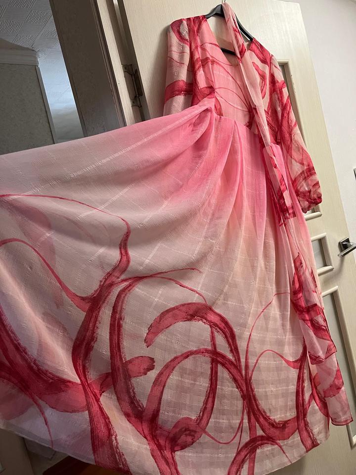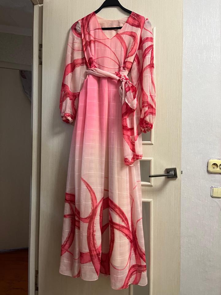 Шикарное яркое платье, сшитое на заказ, 48–50 размера. Из дорогой, лёгкой ткани, которая не мнётся — идеально для лета, мероприятий или стильных повседневных образов. Артикул: 594338