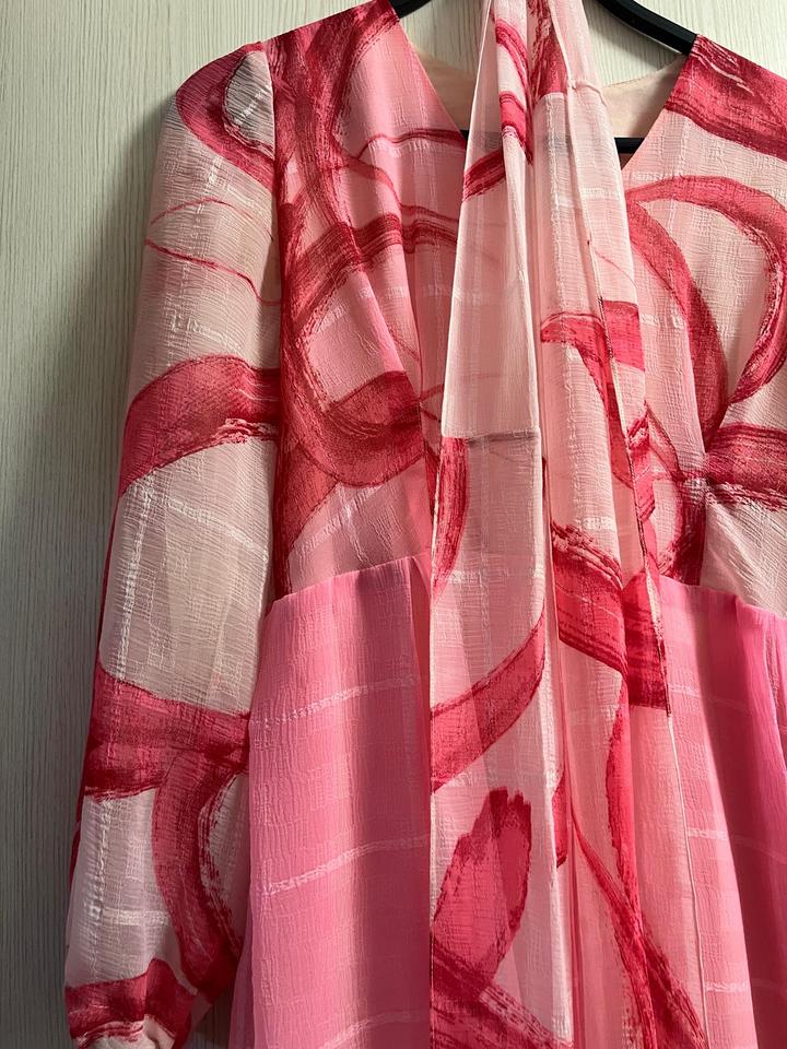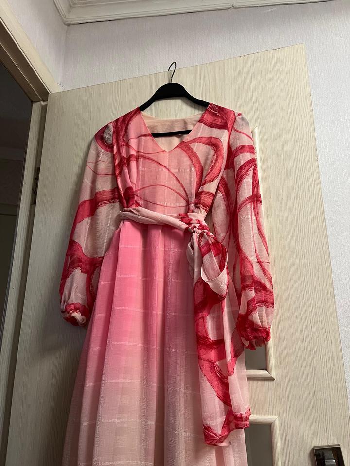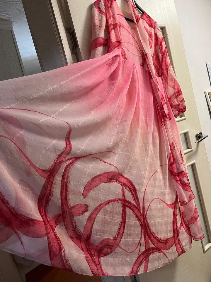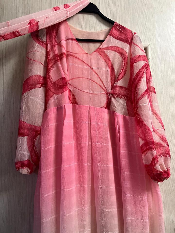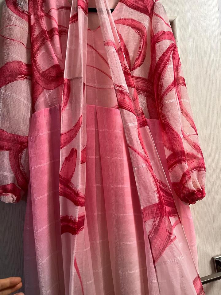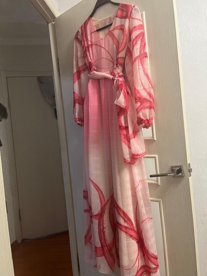 Шикарное яркое платье, сшитое на заказ, 48–50 размера. Из дорогой, лёгкой ткани, которая не мнётся — идеально для лета, мероприятий или стильных повседневных образов. Артикул: 594338