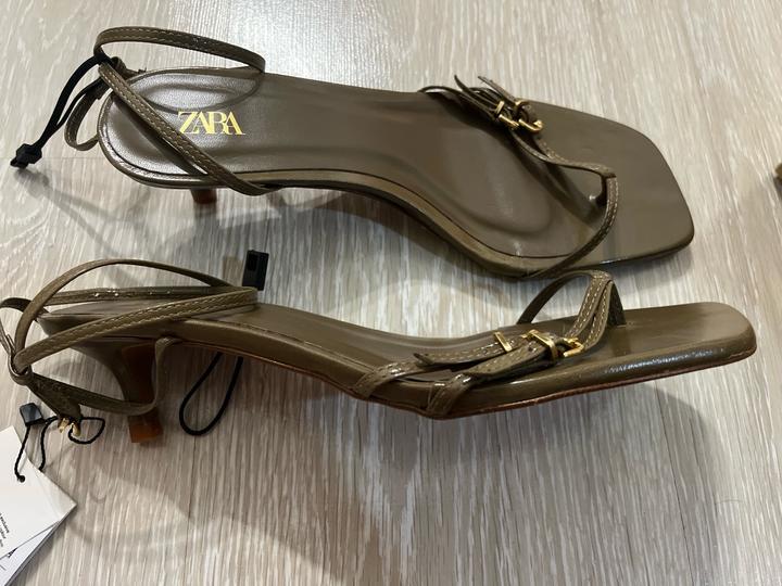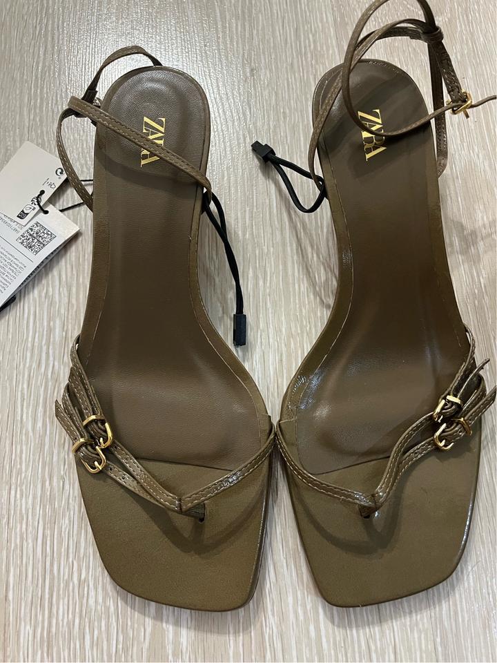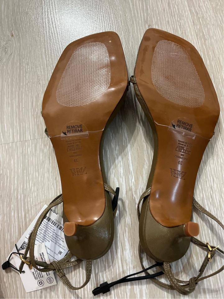 Босоножки на каблучке киттен хилл, размер 39. Цвета хакки с золотистой фурнитурой. Вверх, подкладка и стелька 100% козья кожа. Новые, с этикеткой, на подошве имеется заводская наклейка. Покупала за 35 990 тенге. Артикул: 594377
