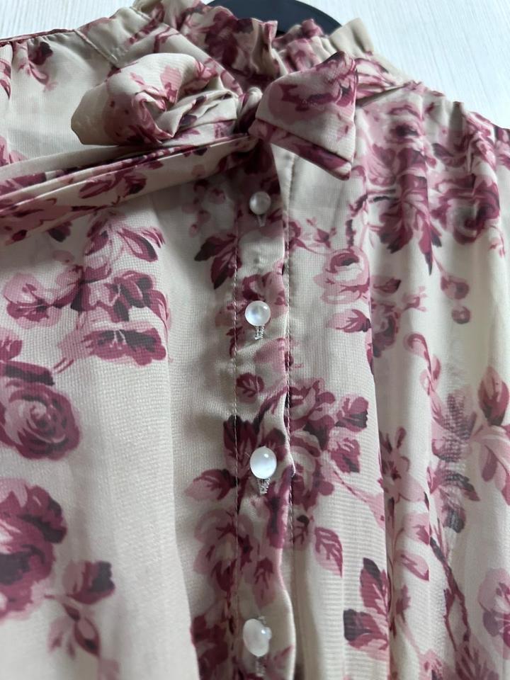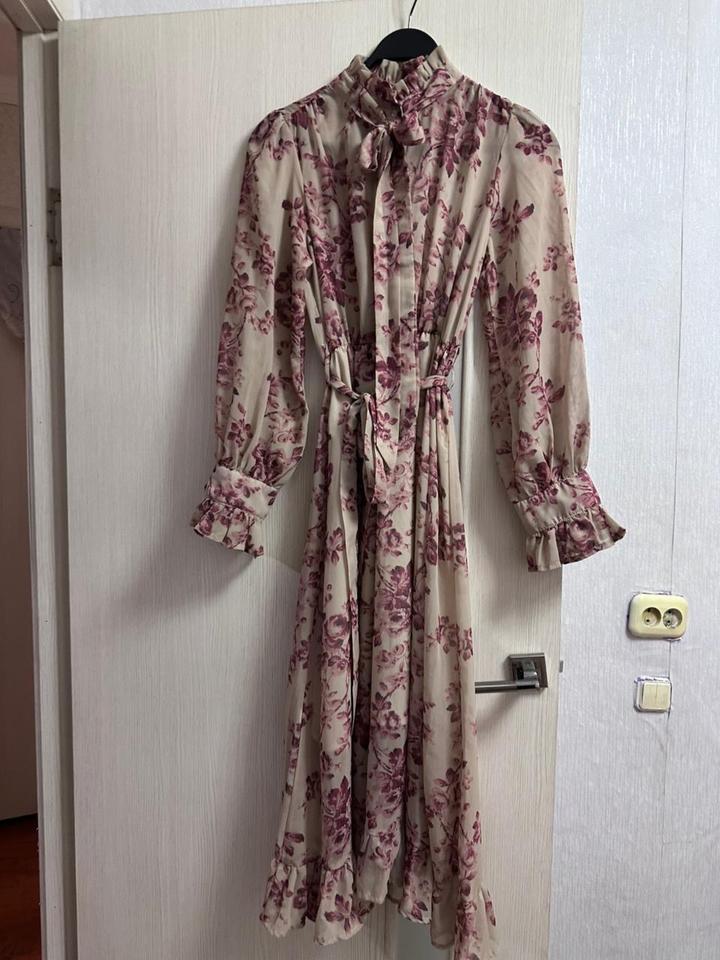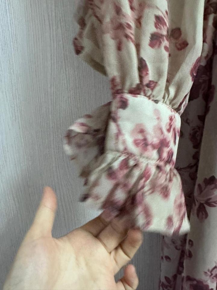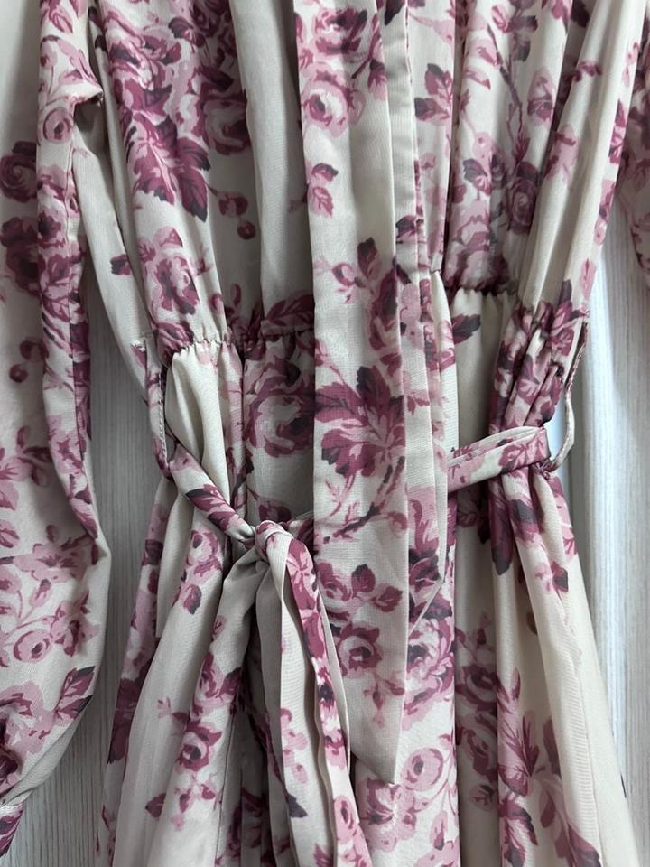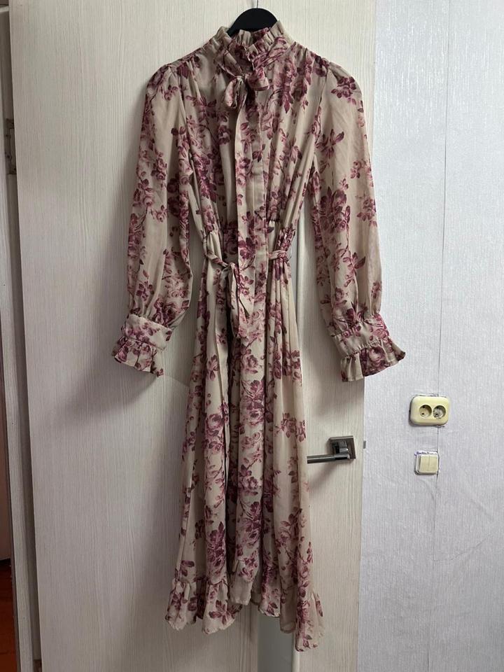 Шикарное шифоновое платье 42–44 размера в нежном бежевом оттенке с розовыми цветочками. Очень лёгкое, воздушное и женственное. Идеально подойдёт как на выход, так и для повседневных образов. В комплекте идёт поясок, который красиво подчёркивает талию.пуговицы рабочие можно кормящим мамочкам Артикул: 594448