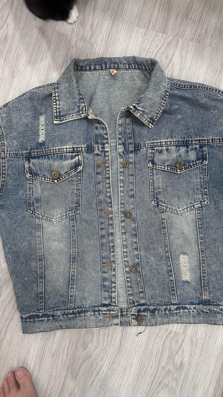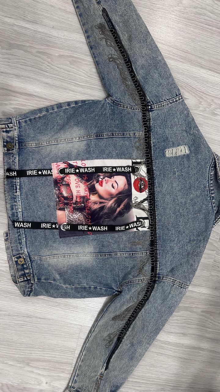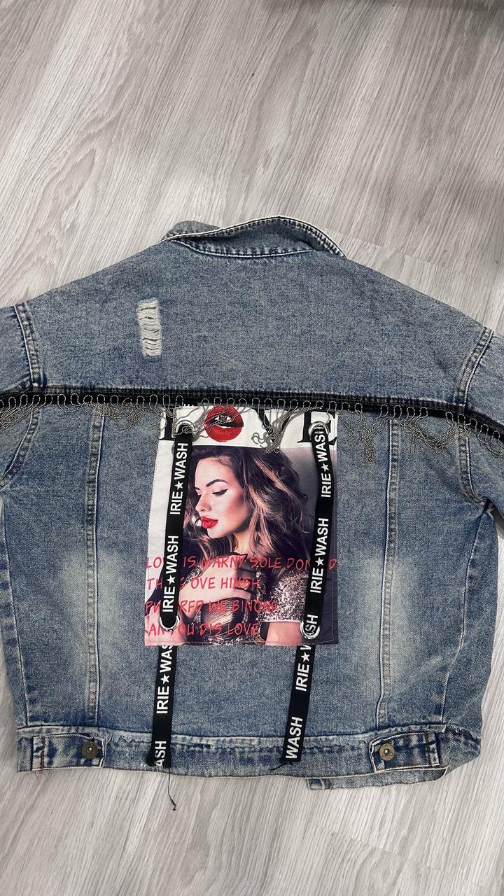Джинсовая куртка, с бахрамой из бисеров и с принтом на спине. Артикул: 594477