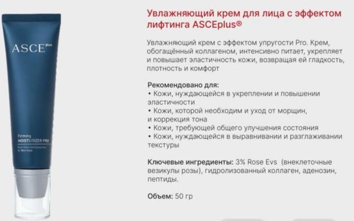 Увлажняющий крем для лица с эффектом лифтинга ASCEplus-