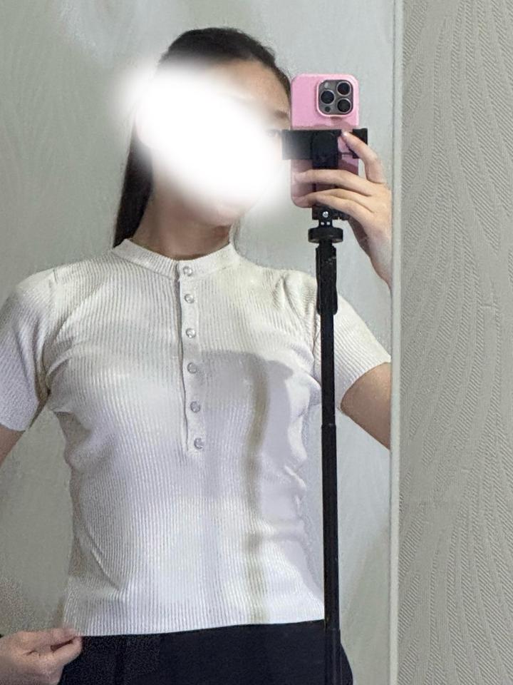 Бежевая футболка на кнопках S размер Артикул: 594612