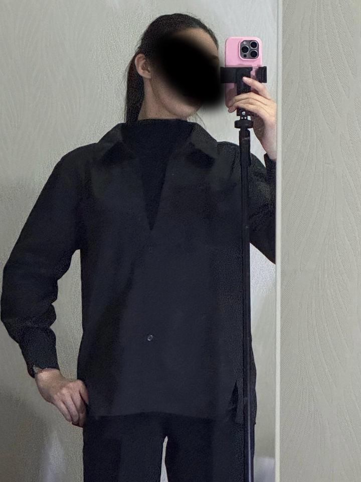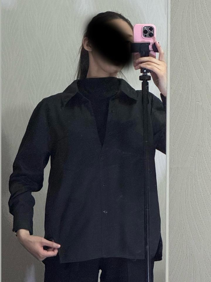 Черная рубашка Обманка с водолазкой 42-44 размер Артикул: 594622