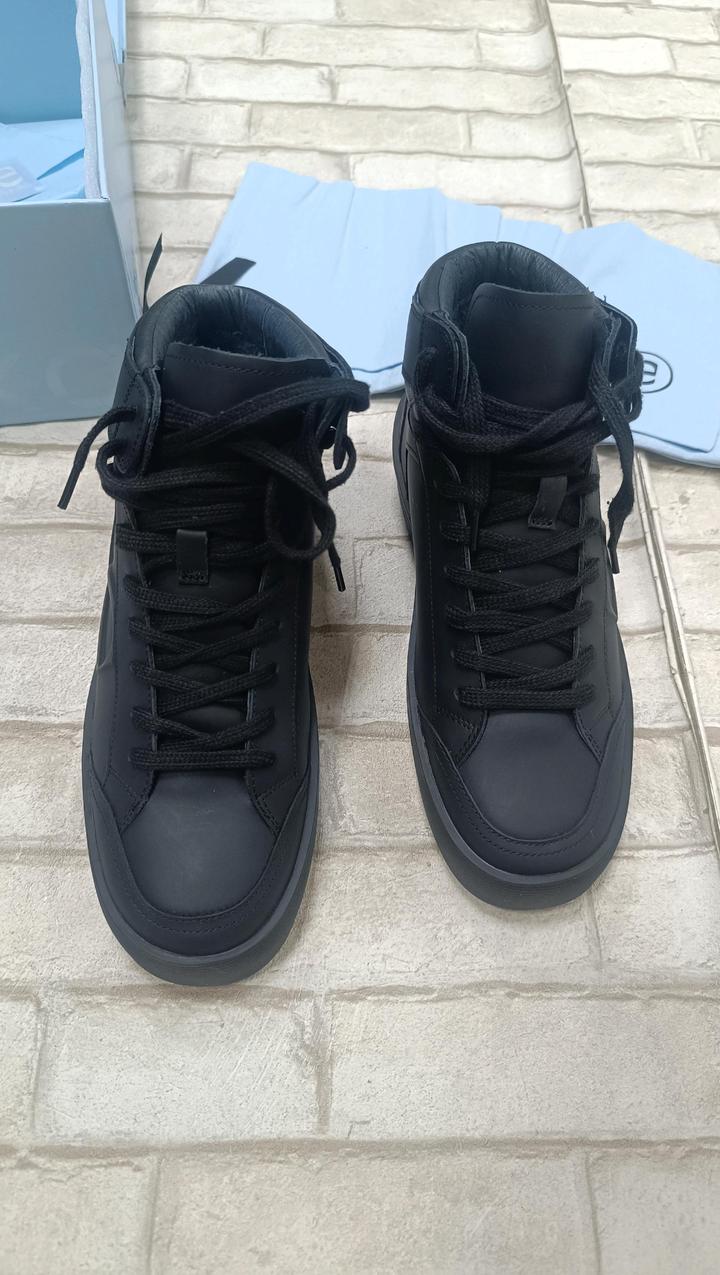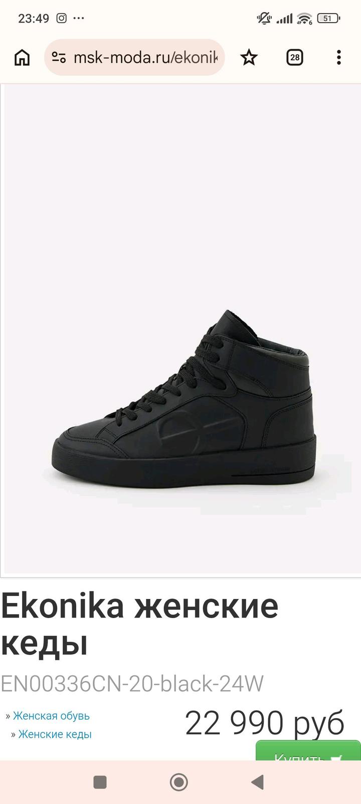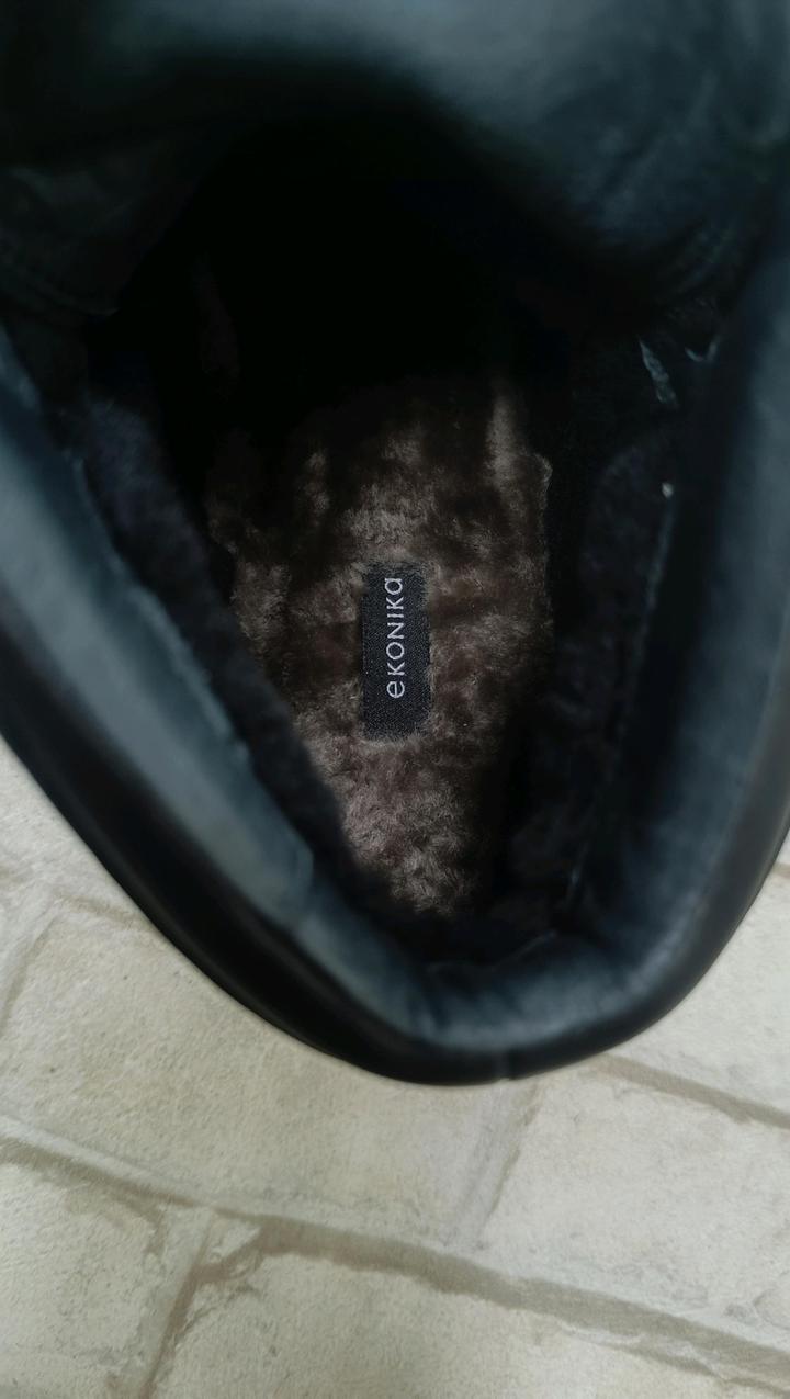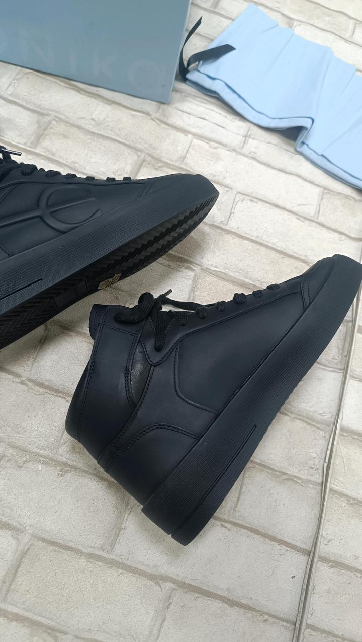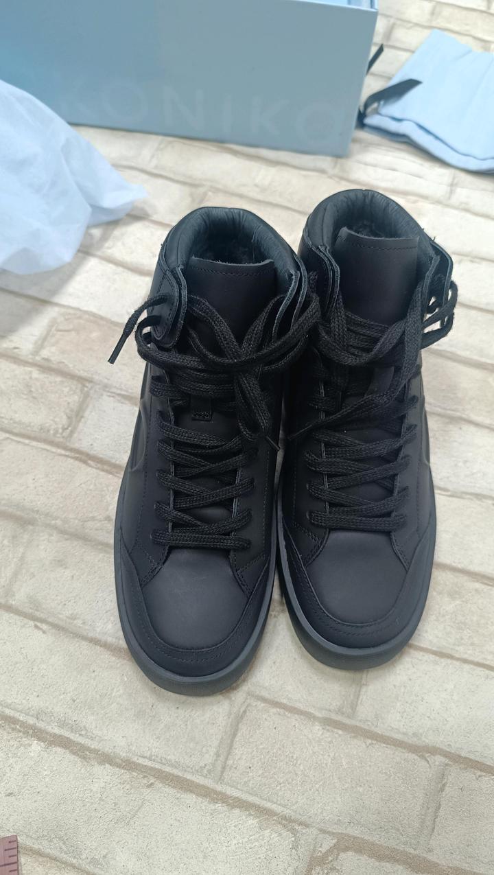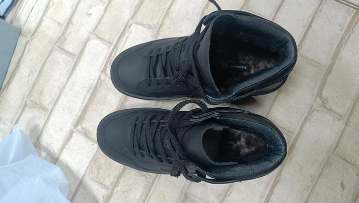 Ekonika, женские зимние кроссовки, натуральная кожа, натуральный мех. Высокие зимние кеды разработаны с акцентом на строгий универсальный дизайн и функциональность. Каждый элемент модели, от подошвы до шнурков, выполнен в черном цвете — это придает изделию лаконичность и делает его особенно удобным в зимнее время. Пара утеплена с помощью подкладки и стельки из натурального меха. Кеды подойдут для температуры до -20 °C. Артикул: 594722