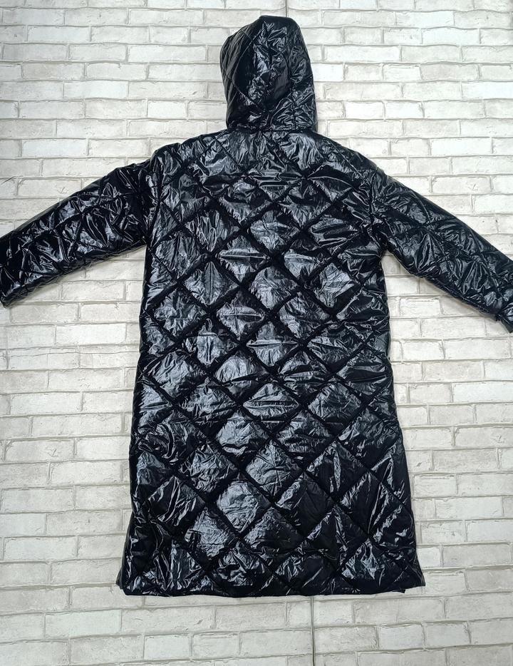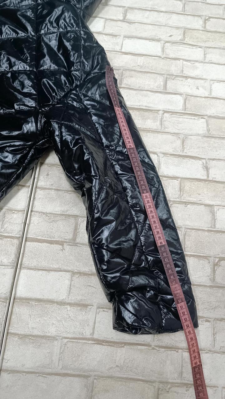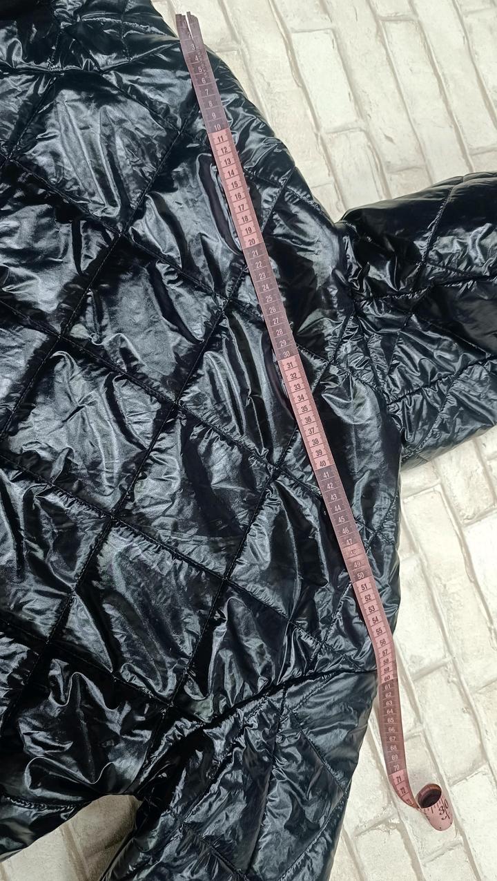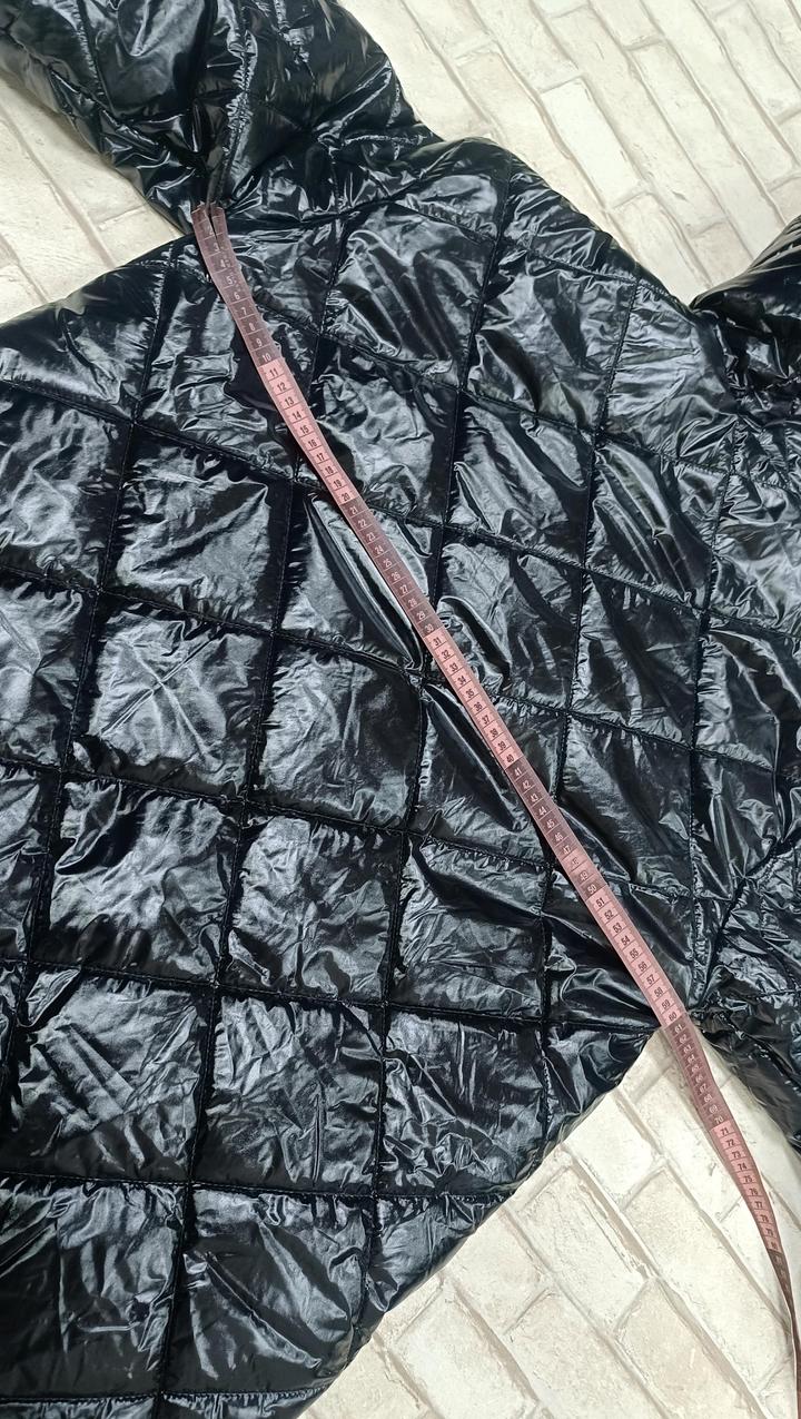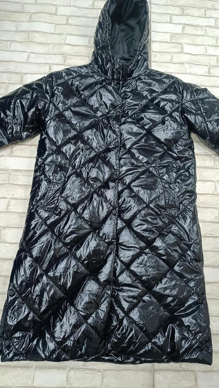 Удлиненная демисезонная женская куртка, утопленная. Чёрная , блестящая. Размер 44. Артикул: 594735