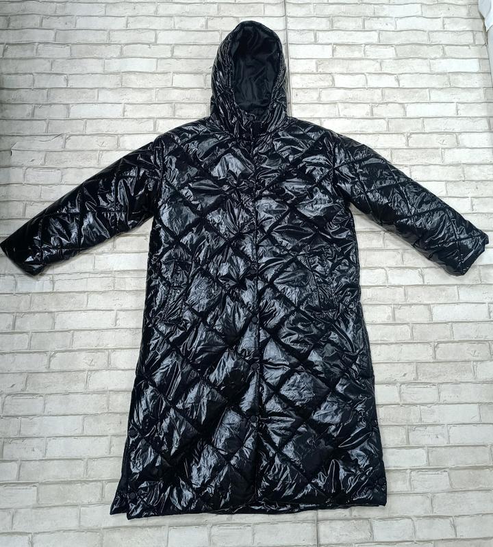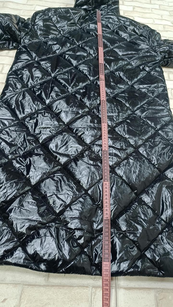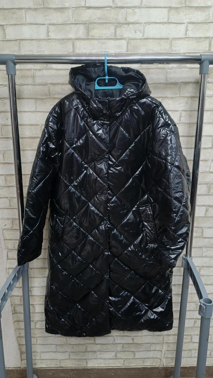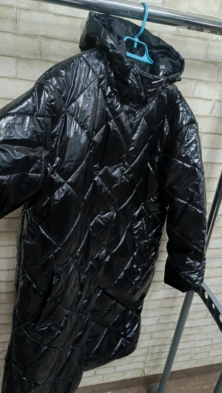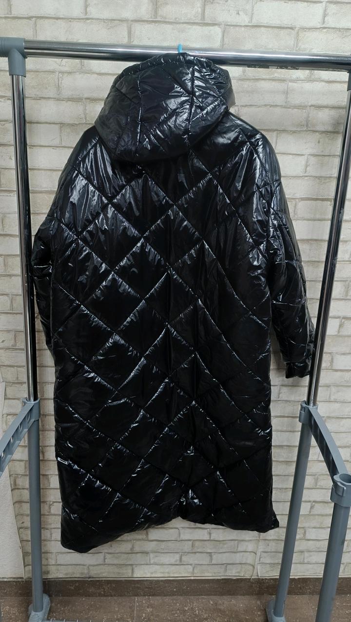 Удлиненная демисезонная женская куртка, утопленная. Чёрная , блестящая. Размер 44. Артикул: 594735