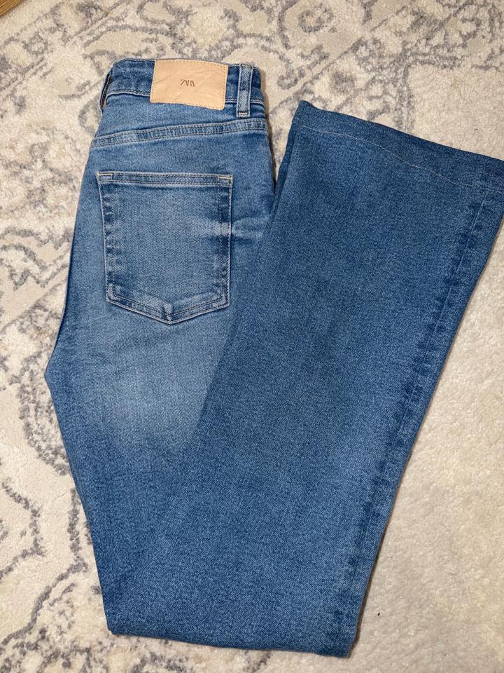 Джинсы Zara Flare (клеш) — Идеальная посадка Продам стильные расклешенные джинсы от Zara в классическом синем цвете. Модель вне времени, которая визуально удлиняет ноги и стройнит. Бренд: Zara (оригинал). Фасон: Flare / Bootcut (слегка расклешенные от колена). Цвет: Насыщенный синий с легким эффектом потертости (denim blue). Состояние: Отличное, без дефектов и потертостей между ног. Ткань: Плотный, но эластичный деним, немного тянется и комфортно садится по фигуре. Артикул: 594742