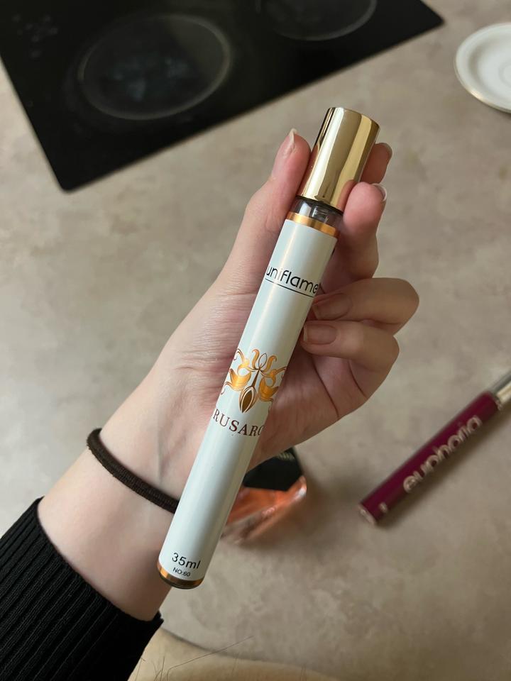 Очень женственный, цветочно жасминовый аромат.Шлейф и комплименты от него море и нету никакого запаха спирта.Держится около 6-8 часов лично на мне. Коробку выкинула к сожалению. 🔴РЕПЛИКА! И отдам в подарок эти два аромата по 35мл.Trusarci- унисекс аромат, похож на запах чистоты тот самый, спокойный и приятный.Euphoria-чуть тяжелее, гурманно и в конце нотки цветов Артикул: 594751