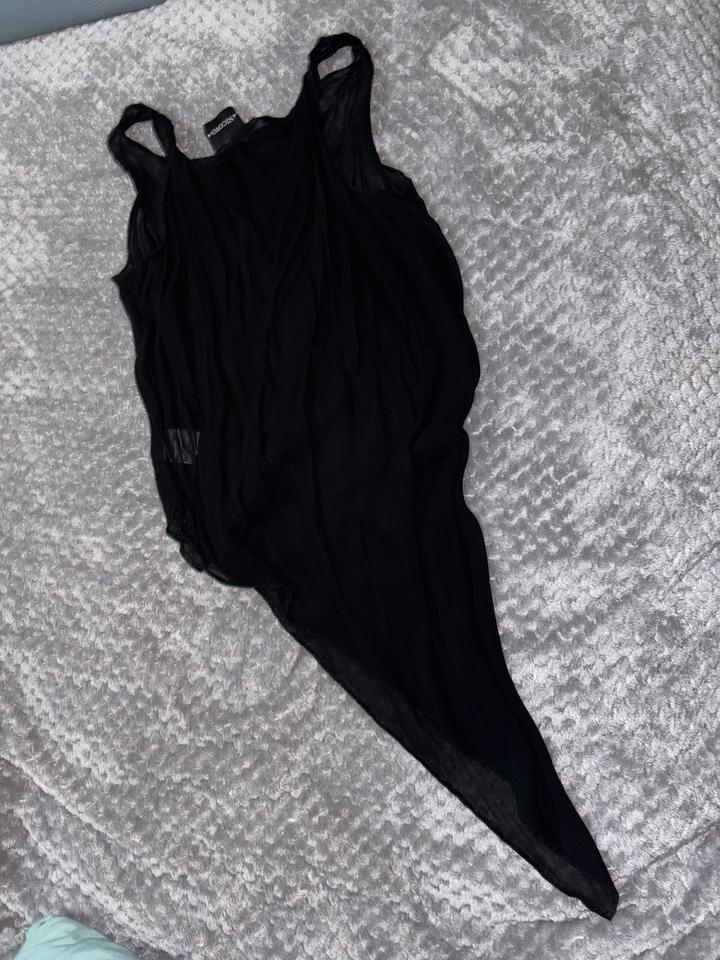 Черная прозрачная, ассиметричная , модная майка . Можно носить на голое тело или стилизовать с пиджаками или носить как парео поверх купальника .Надето 1 раз , нужно лишь погладить. На хс с м Артикул: 594754