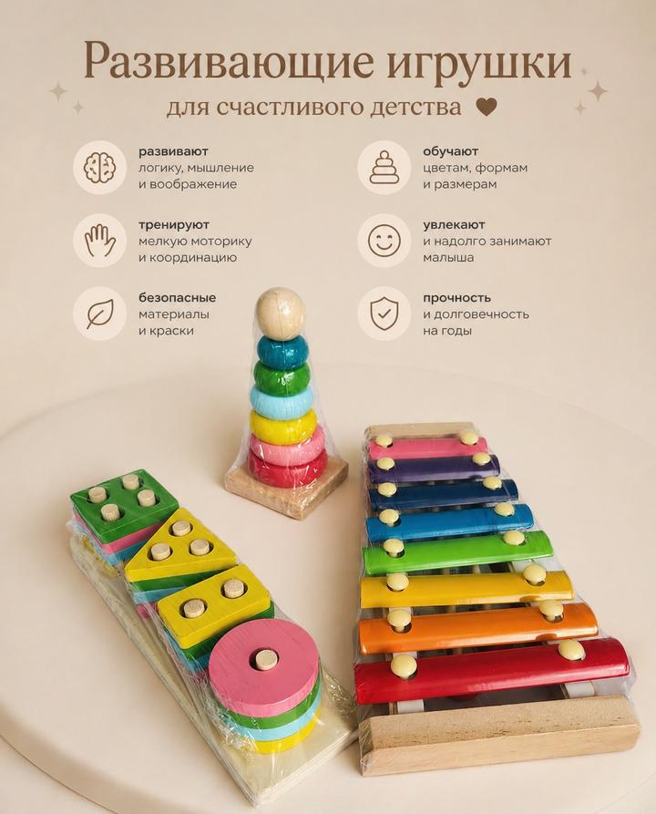развивающий набор игрушек для малышей😍 развивает мелкую моторику , координацию и слух . можно учить цвета и формы . малыш будет сам по себе играть и залипать , а мама попьет свой чай🤍 Артикул: 594778