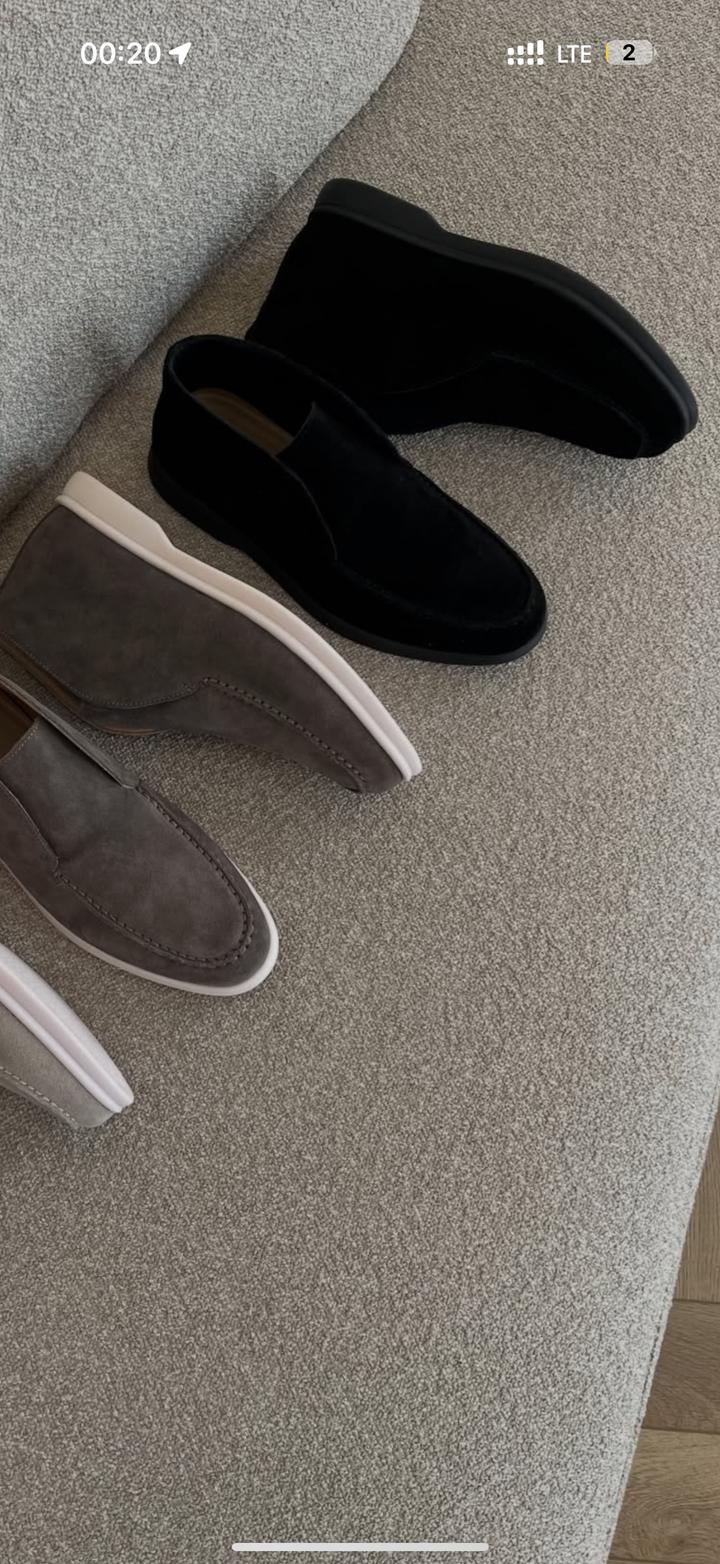 Продам ни разу не ношенные лоферы чёрные натуральная замша, чёрная подошва Под Loro Piana, коробка, пыльники имеются Размер 39 Артикул: 594780
