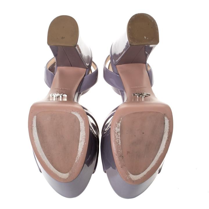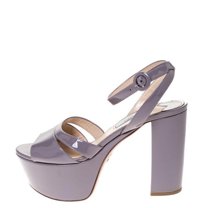 Сандалии Prada фиолетового цвета из лакированной кожи с открытым носком и ремешком на щиколотке на платформе, размер 37,5. Артикул: 594797