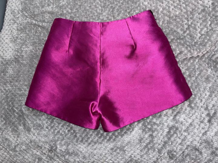 Крутые ультрамодные шорты на высокой посадке , пурпурного цвета . Материал Сатин атлас , с черным подкладом , держит форму Артикул: 594798