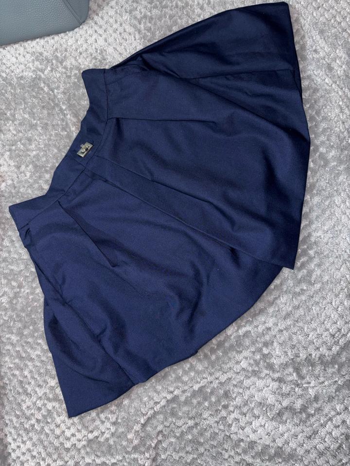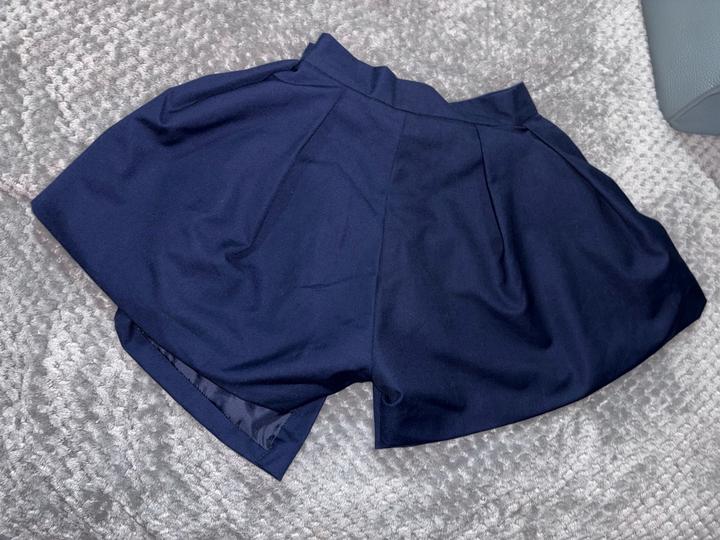 Шорты обманка спереди юбка костюмного материала , на высокой посадке , модные удобные есть карманы и застежка как у ремней Hermes . Цвет темно-синий, идет на хс -с Артикул: 594804