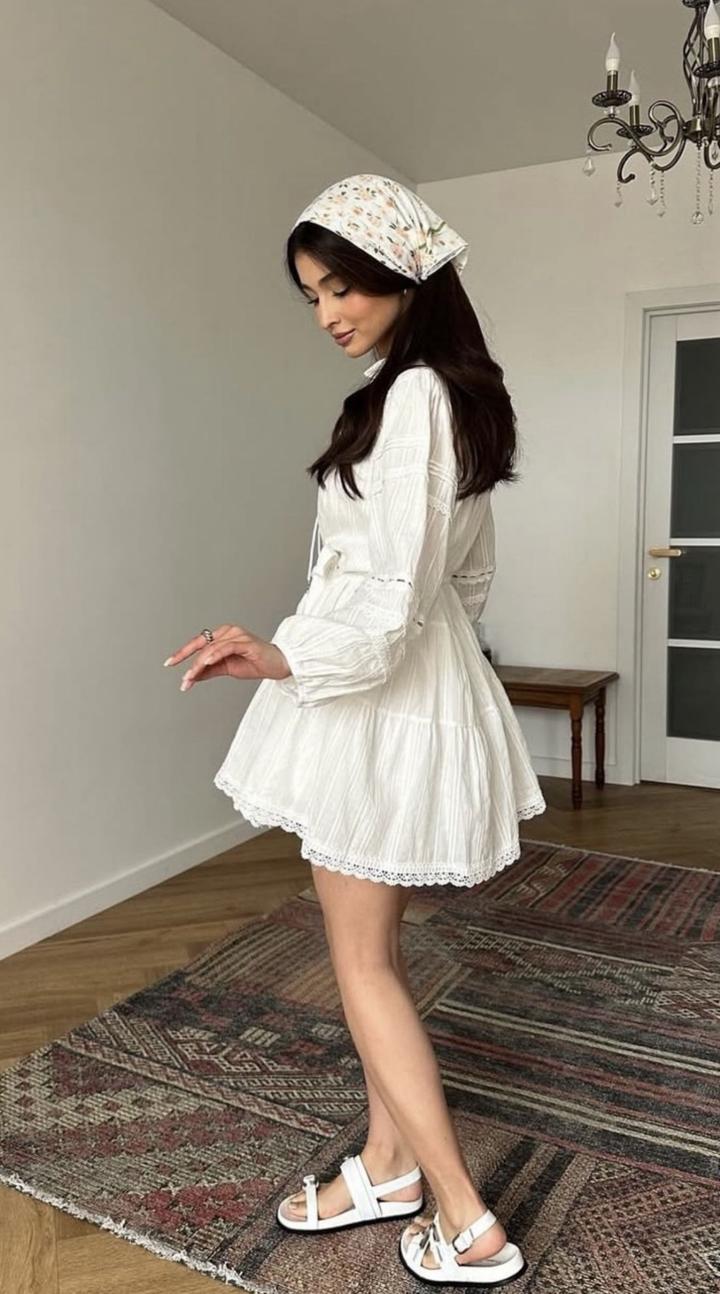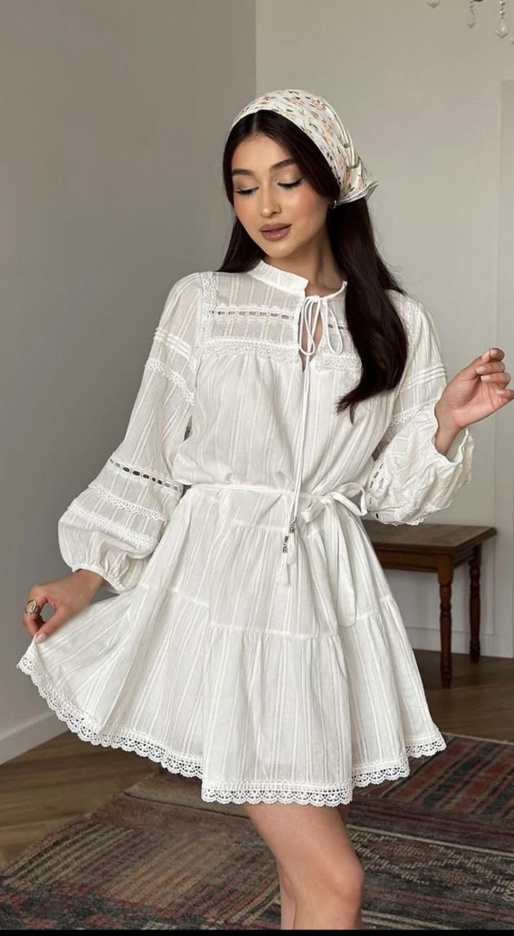 белое платье из хлопока, круглый,мини размер-м/л Артикул: 594884