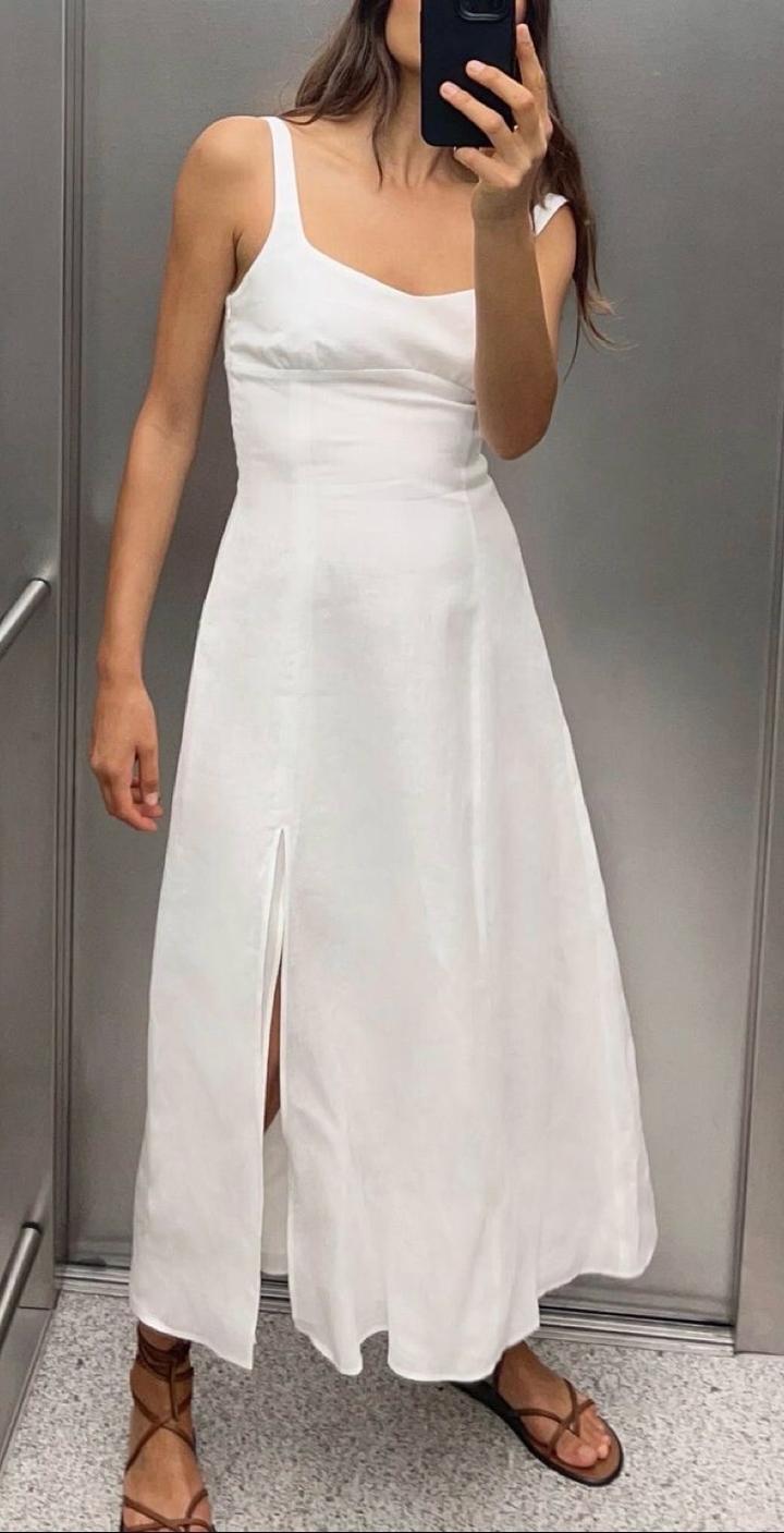 белоснежный сарафан от ZARA в длине миди ☁️ разрез до середины бедра, бежевый подклад☁️платье не просвечивает ☁️ размер XL, подойдет и на L ☁️ Артикул: 594906