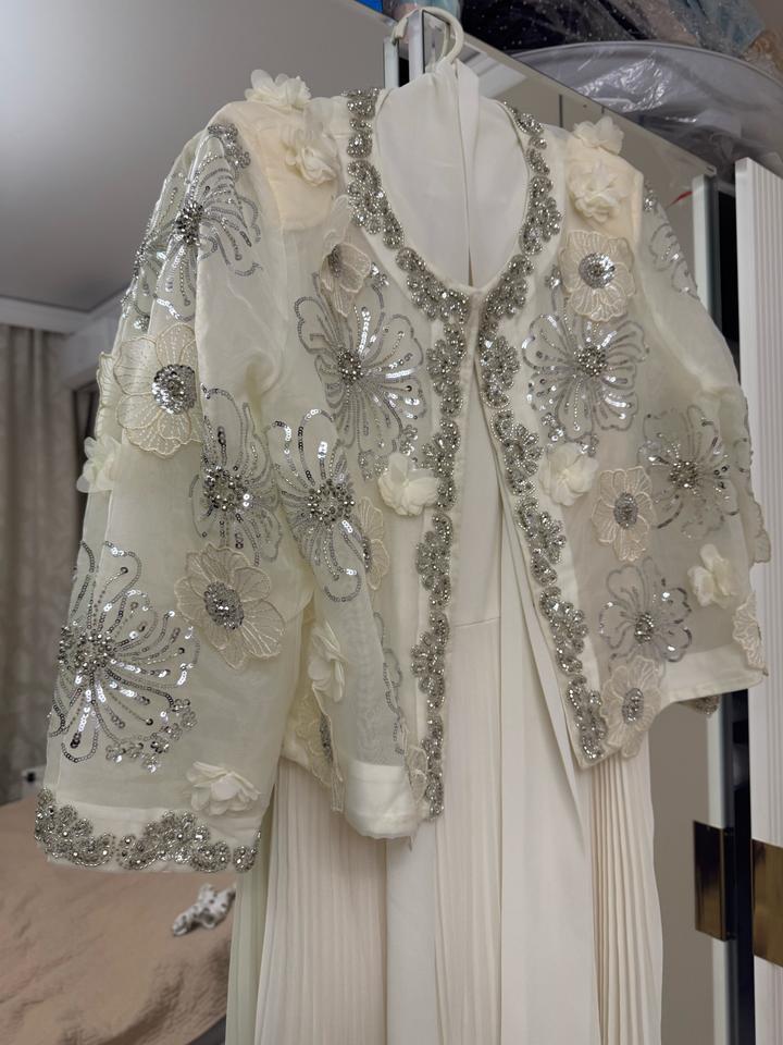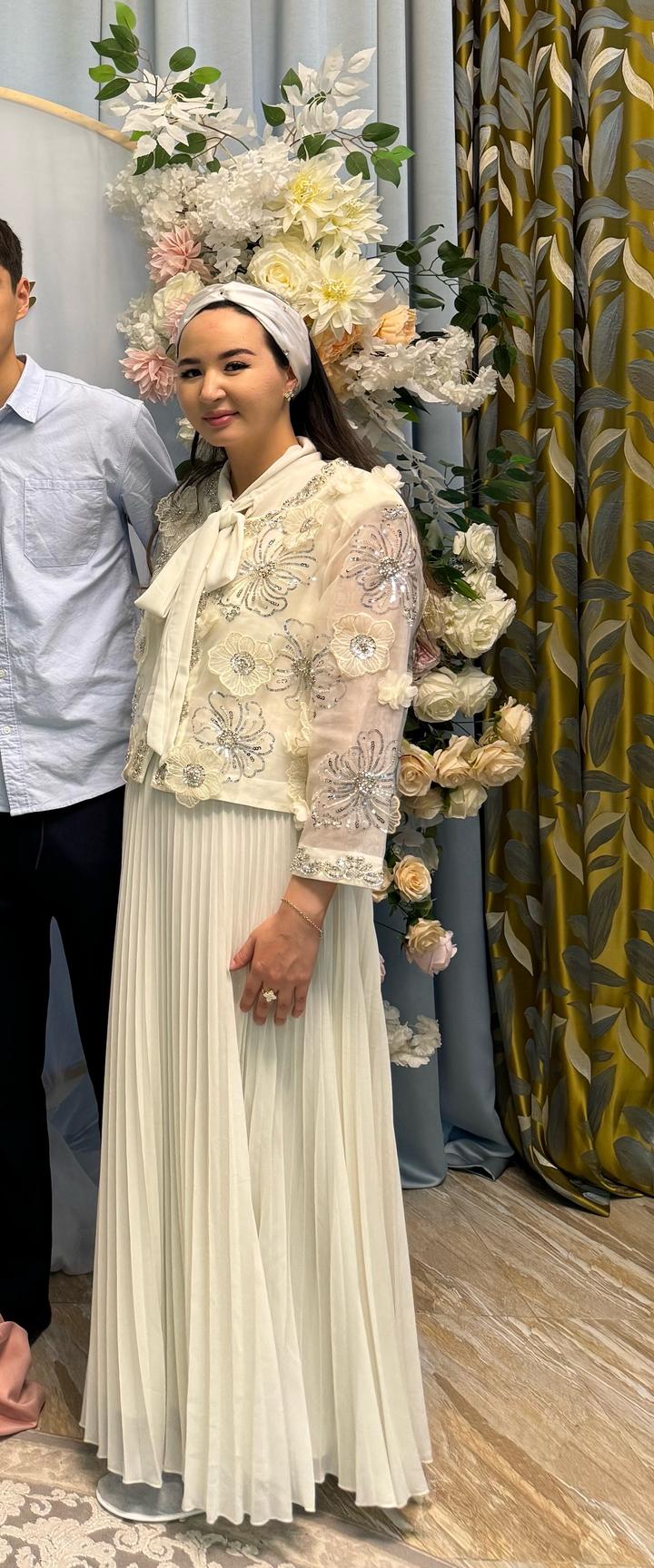 Белое платье и сверху нарядная, красивая накидка, надевала всего один раз на Узыту сестры, была на 5,5 месяце беременности, подойдет на М и Л Артикул: 594927