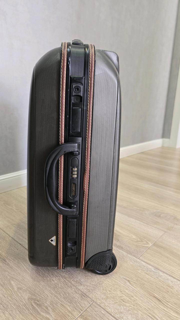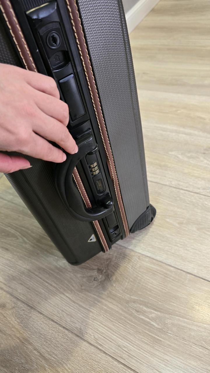 Пользовалась 3 раза, в поездке в Японию. Отличное состояние, есть кодовый замок, ножки ролики, эргономичная усиленная ручка всё отлично работает. Жёсткий корпус, но при этом легкий, текстурированная отделка. Очень крепкий. Чистый. Размер: 32×50×18 см. Артикул: 594989