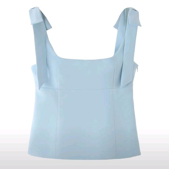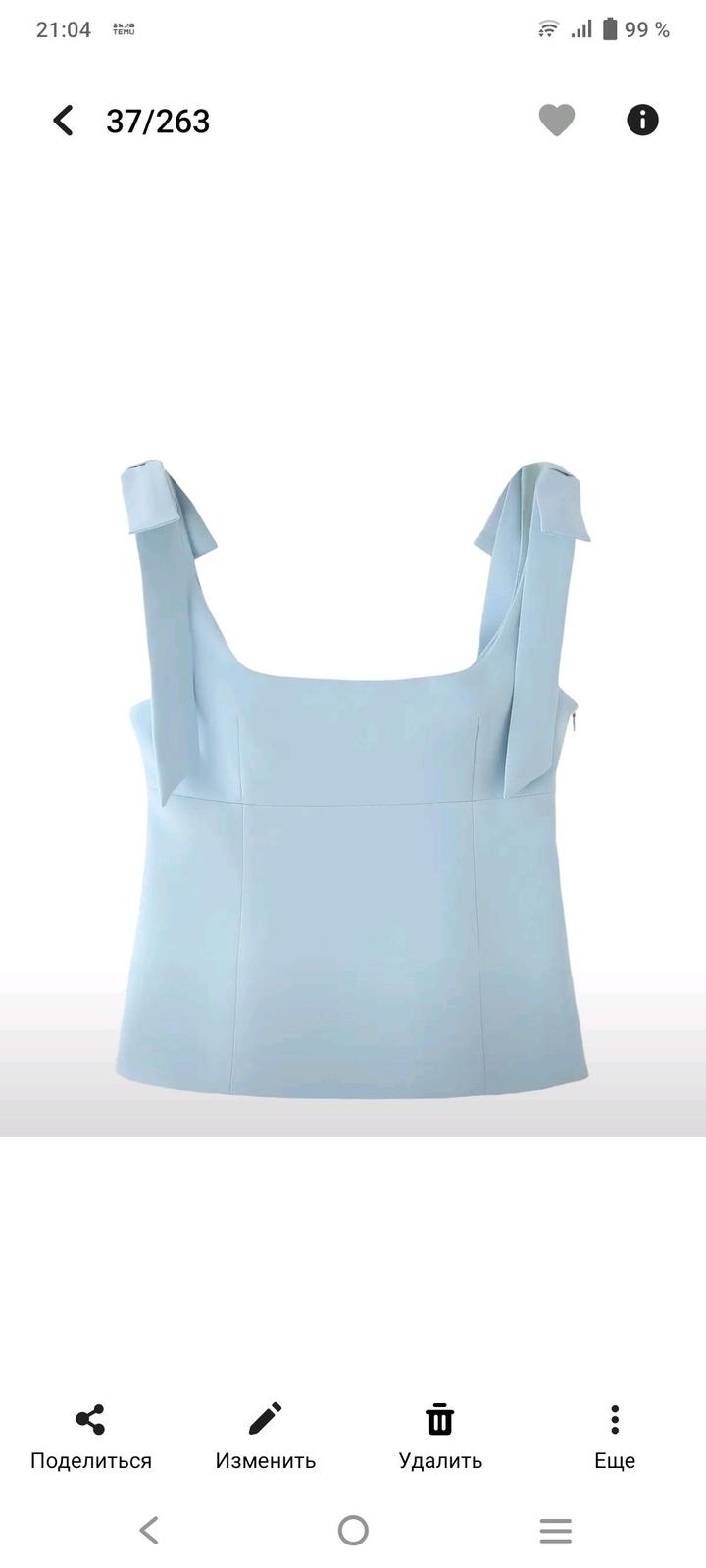 Новый топ, размер М, подойдет на 44-46, плотный материал, не тянется, есть подклад, молния сбоку, цвет голубой Артикул: 594996