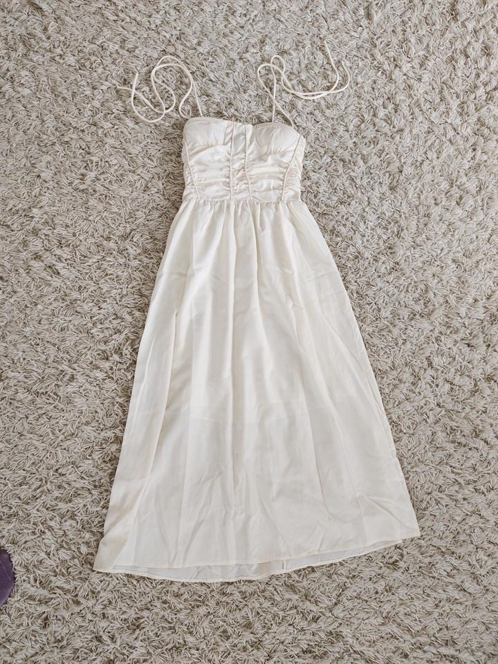 Сарафан в отличном состоянии, размер S, длина макси, на фото рост 165, есть подклад, не просвечивает, в лифте есть вставки поролона, можно носить без белья, бретели - тонкие завязки, цвет - сливочное масло Артикул: 595000