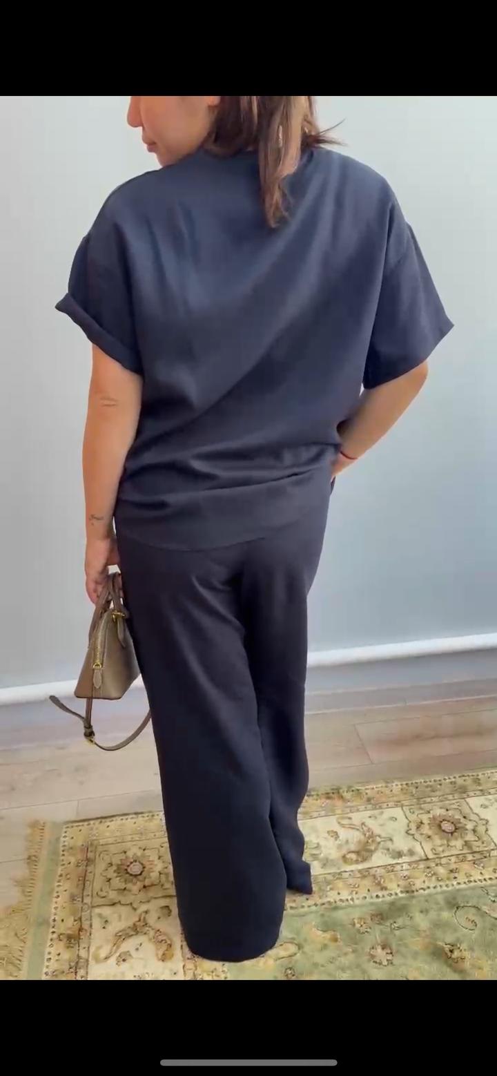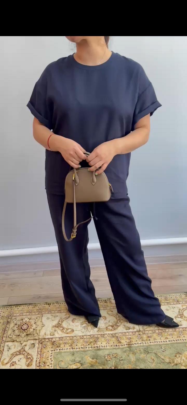 Льняная двойка 100% лён, подходит на М-Л, длина брюк отличная, новая есть в коричневом цвете, фото скрин с видео Артикул: 595110