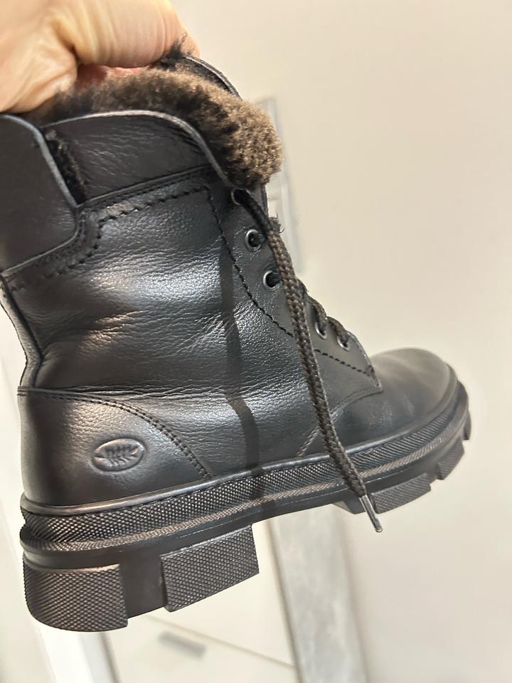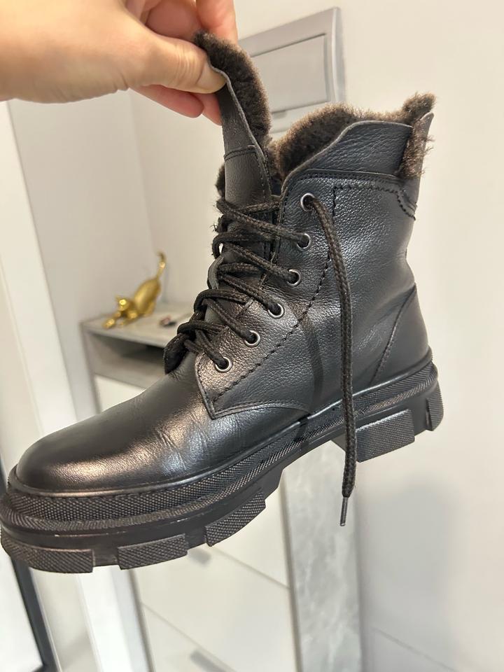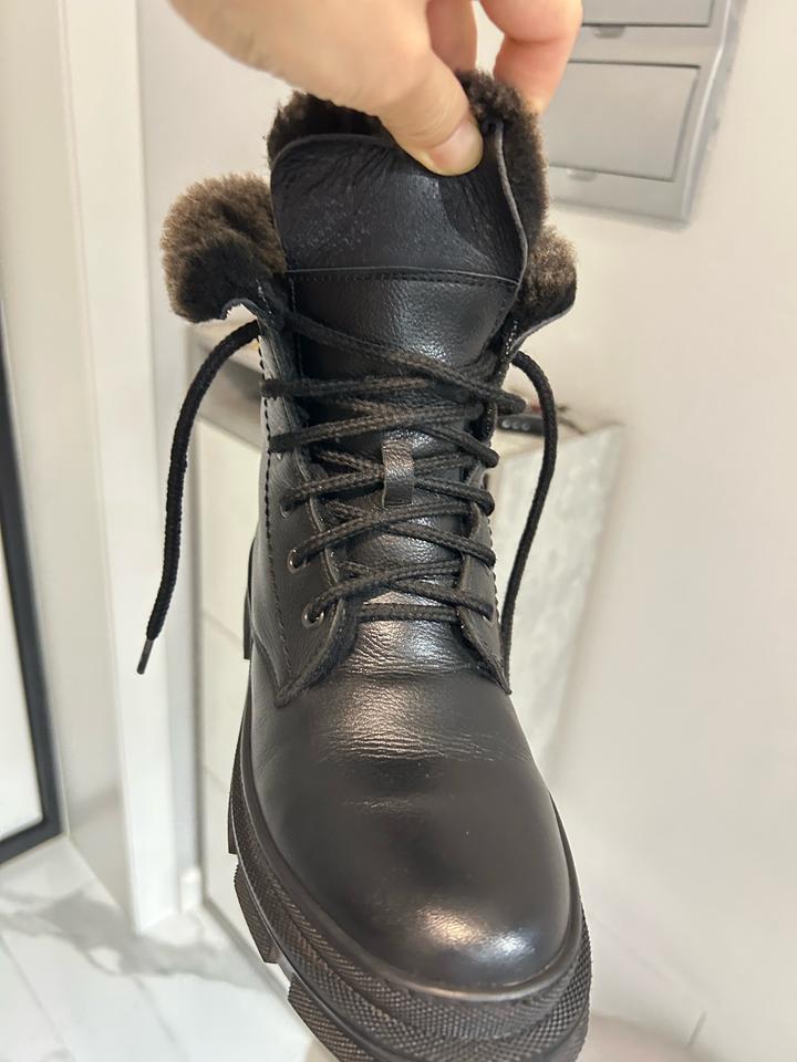 Выгодно покупай зимние вещи летом и сэкономь деньги. Кожа и мех натуралка. Подошва толстая. Подходит со всеми вещами. Покупала в кимекс. Фирму модете прогуглить. Размер 38. Одевала одну зиму всего лишь 2 недели. Артикул: 595111