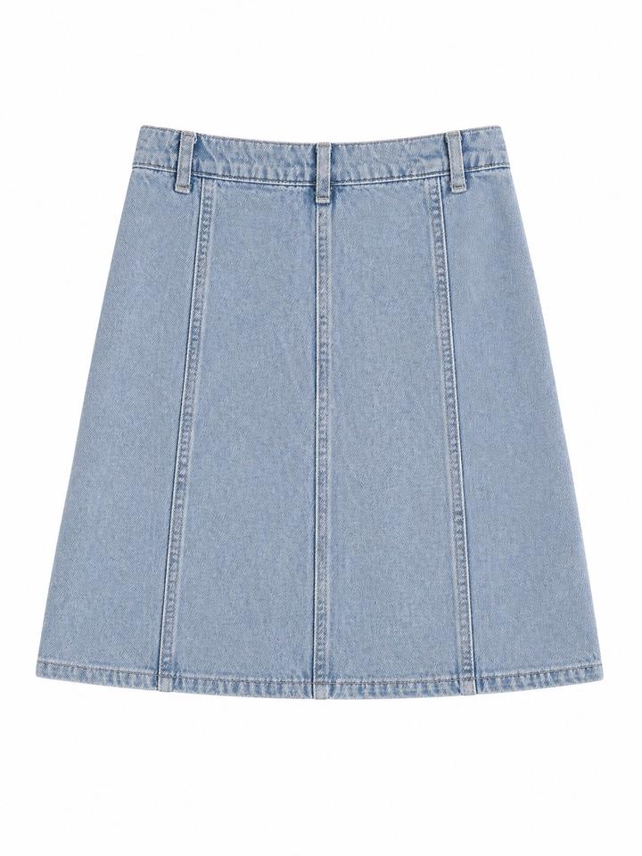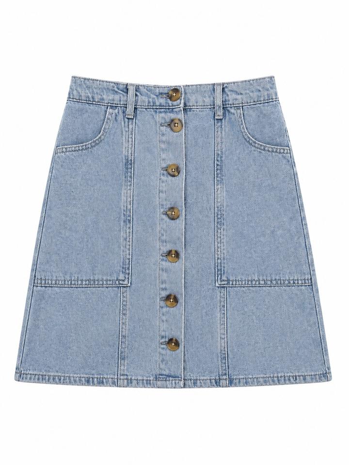 Джинсовая юбка мини светло-голубого цвета. Модель А-силуэта, высокая посадка, отлично подчеркивает талию. Плотный качественный деним, держит форму. Спереди застёжка на пуговицы, стильные накладные карманы. Универсальная вещь на каждый день — легко сочетается с футболками, топами, рубашками и свитерами. Подходит для прогулок, учебы и повседневных образов. Состояние отличное. Артикул: 595172