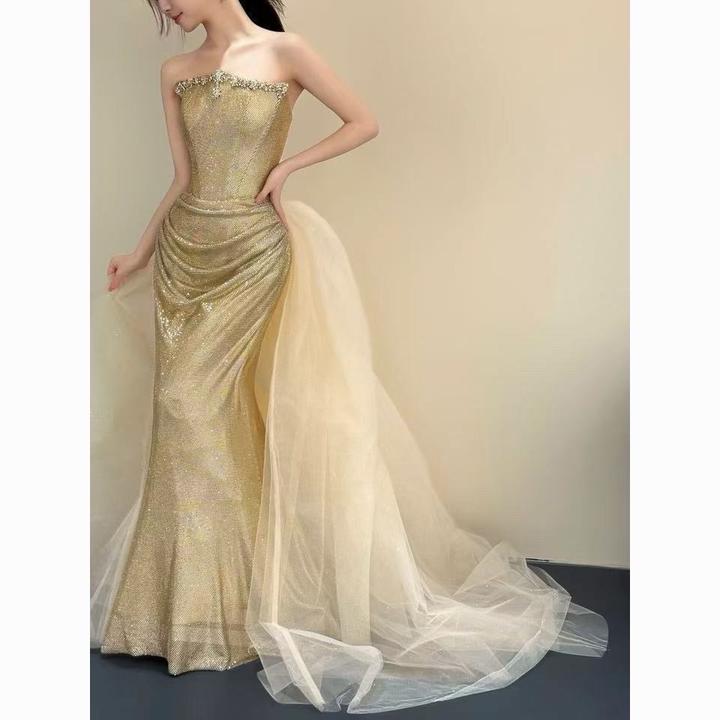 Платье золотистого оттенка Красивое Артикул: 595216