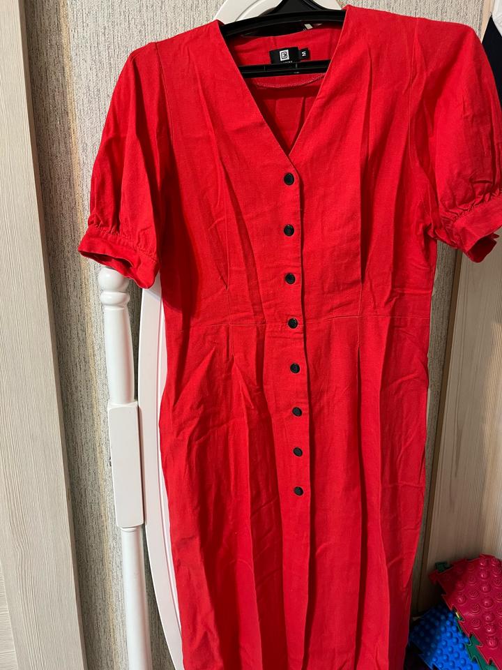 Красное платье из льна. Размер М. Длина ниже колен Артикул: 595222