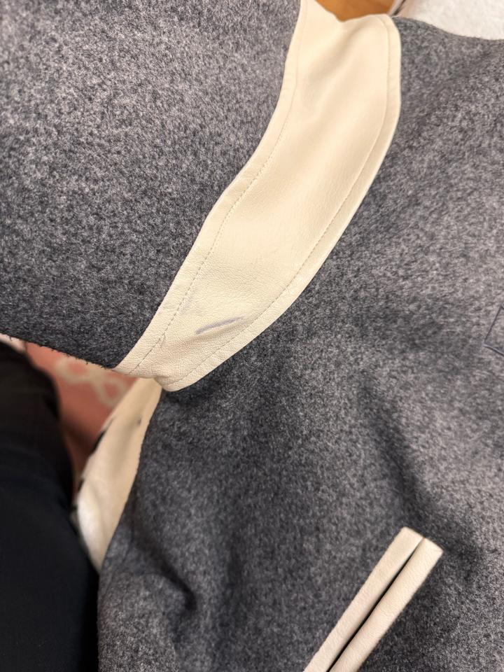 Бомбер надевала один раз. Из-за черной сумки который выделяет краску немного появилось пятно все видно на фото только один менее заметный другой таметный ну он подмышкой и окружающим не заметно, по этому цена такая. Бомбер очень теплый, утепленный, стильный, классный. Артикул: 595227