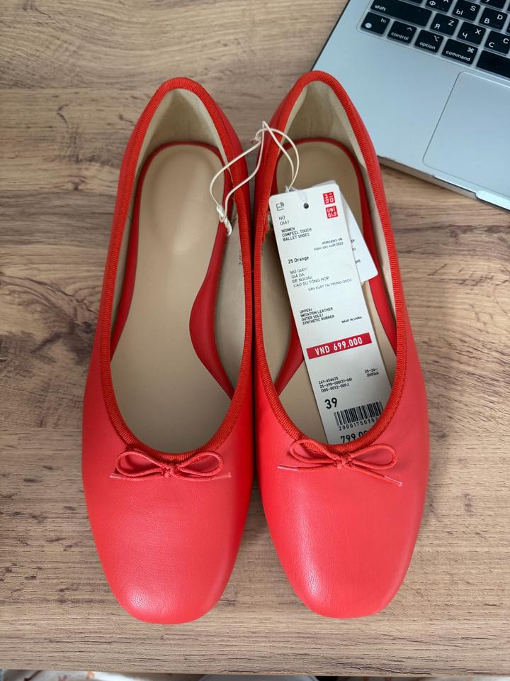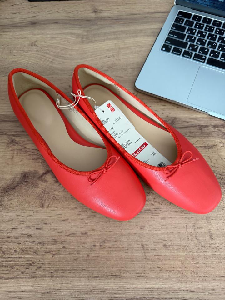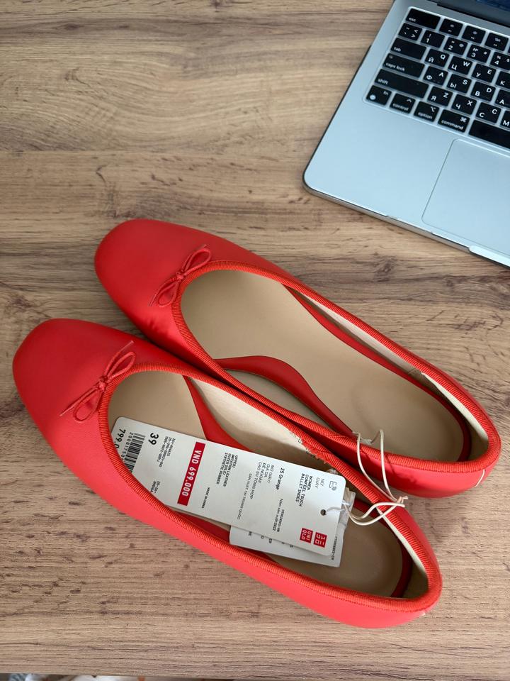 Новые балетки от Uniqlo красного цвета, размер не подошел на 39, маломерка, отлично подойдет на 38 размер. Покупалась во Вьетнаме, новая. Артикул: 595239