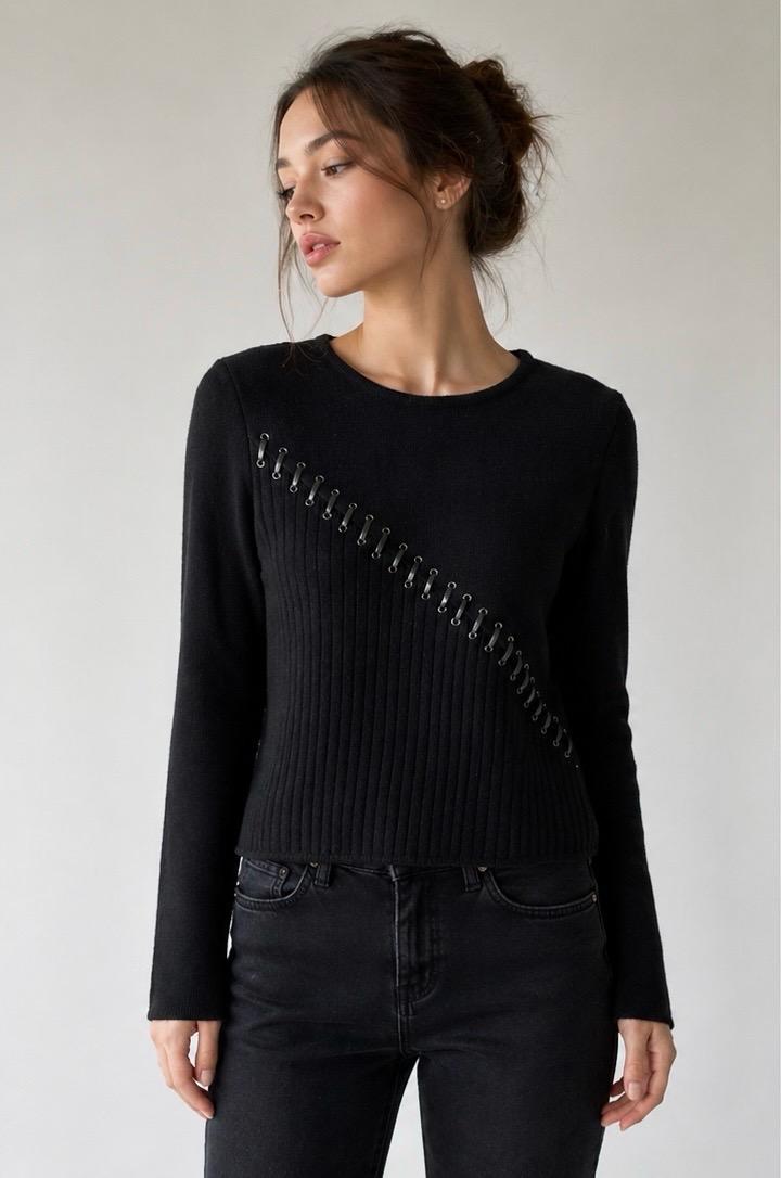 Стильный джемпер ESLINA KAROP с кожаной шнуровкойS/M