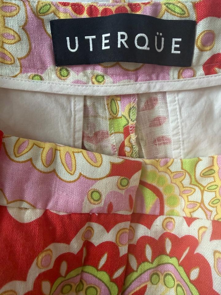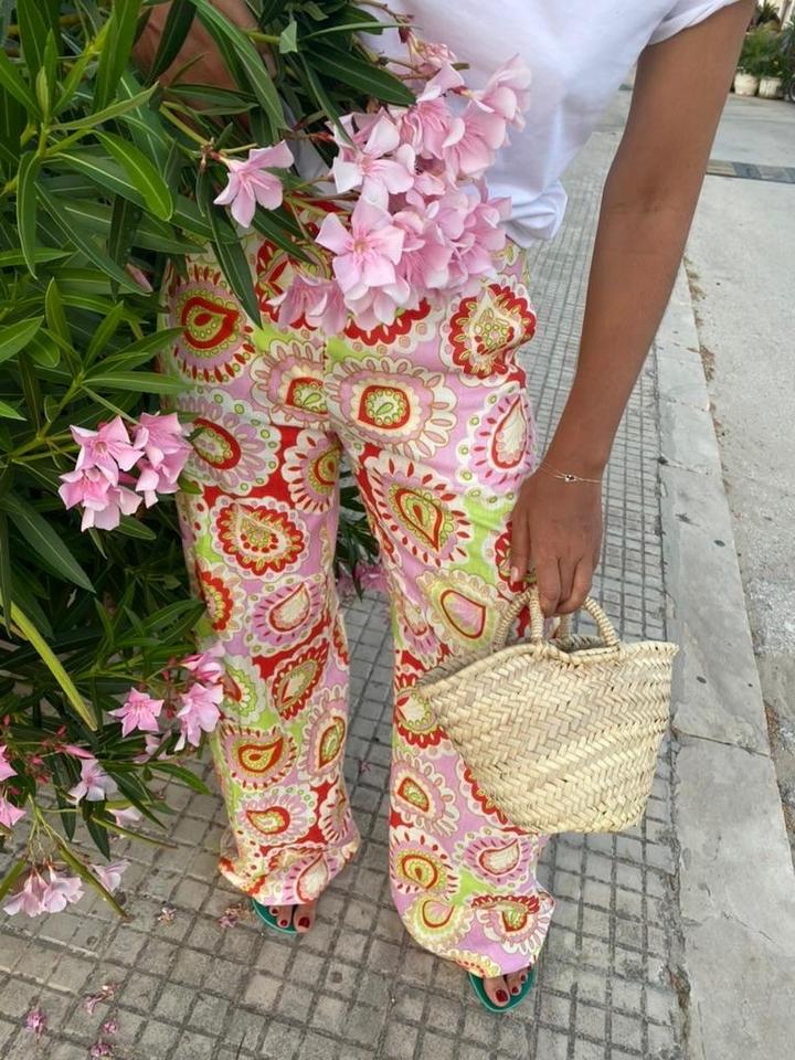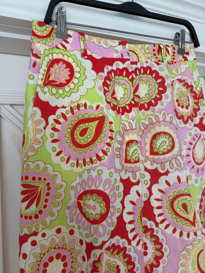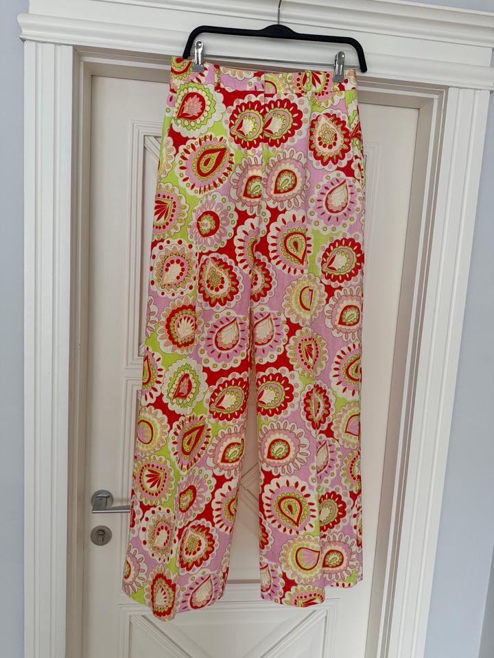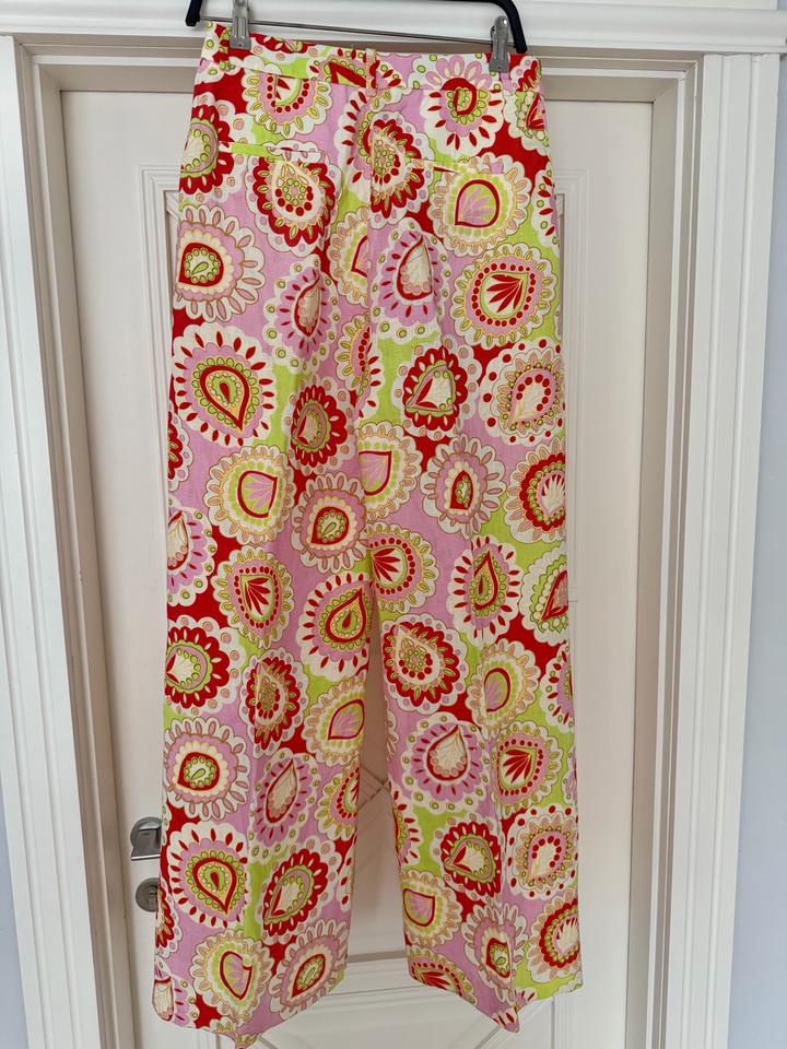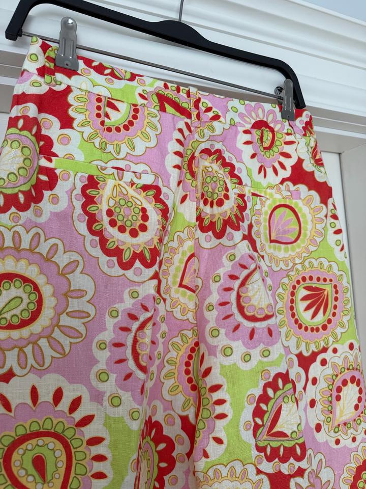 Льняные прямые брюки с принтом. Размер 38 M Артикул: 595336