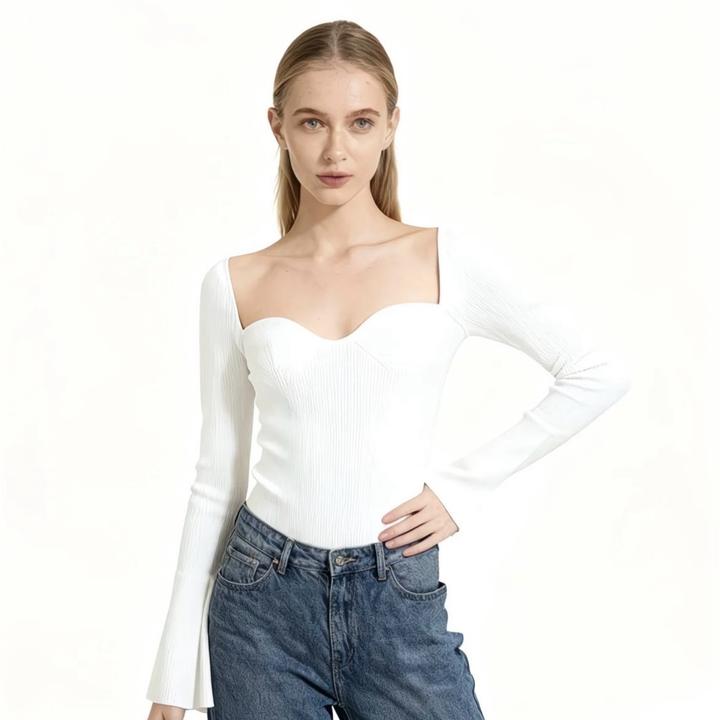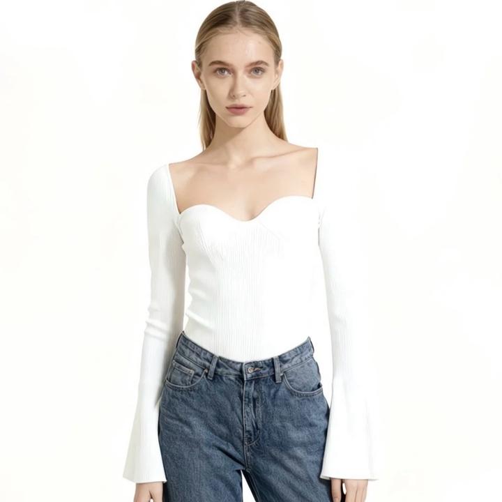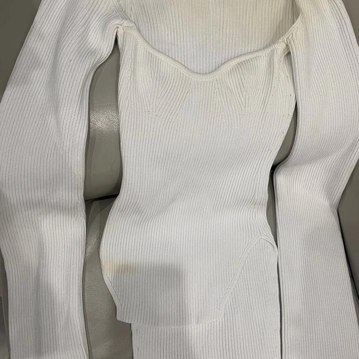 Нежная белая кофта с открытыми плечами 🤍 Идеально подчеркивает фигуру, смотрится очень женственно и аккуратно. Артикул: 595352