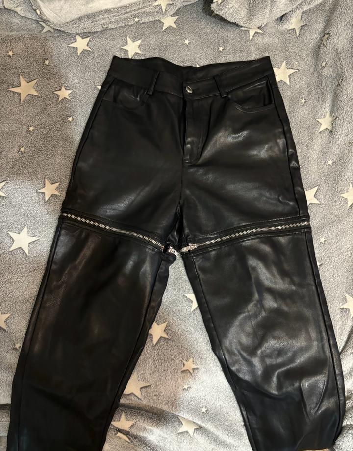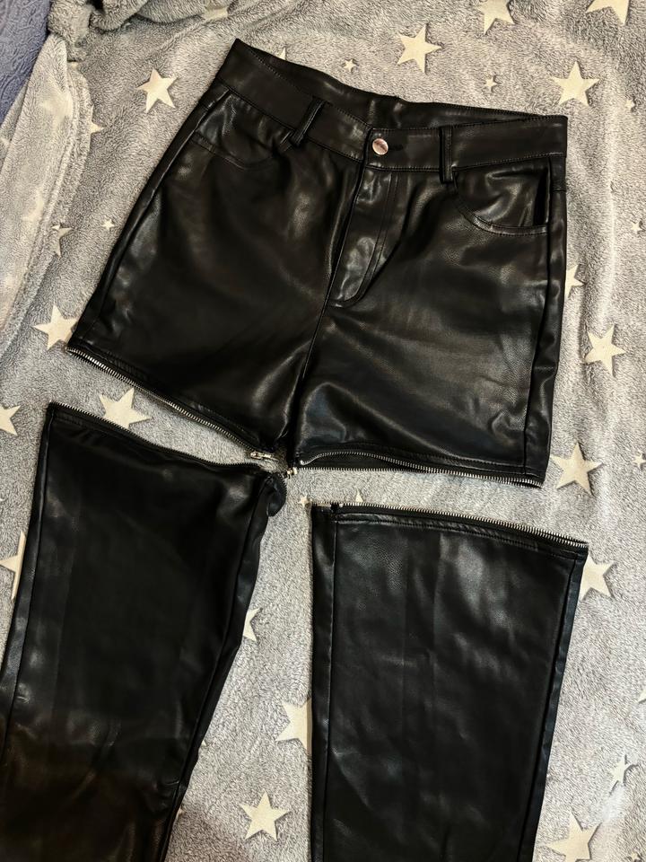 Кожаные штаны 2 в 1, можно носить как шорты,штанины пристегиваются и отстегиваются, замок не заедат не расходится, все супер В отличном состоянии На этикетке размер L, но на мой S-M в самый раз, идеально будет на 44р думаю Артикул: 595496