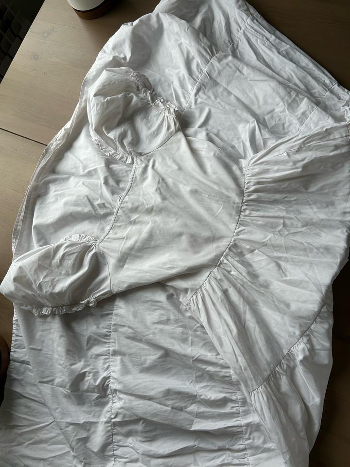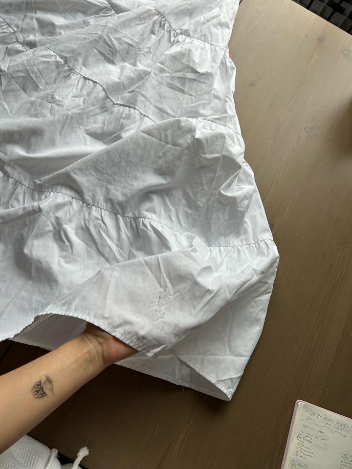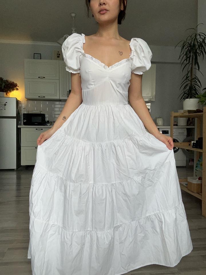 Белое длинное платье stradivarius. Ткань приятная, легкая. Есть не сильно заметные пятна, прикрепила фото. Артикул: 595497