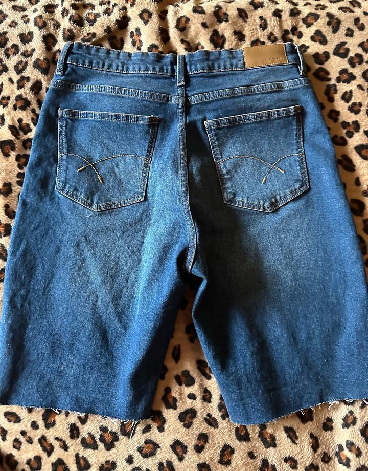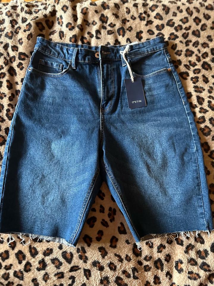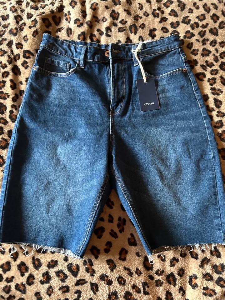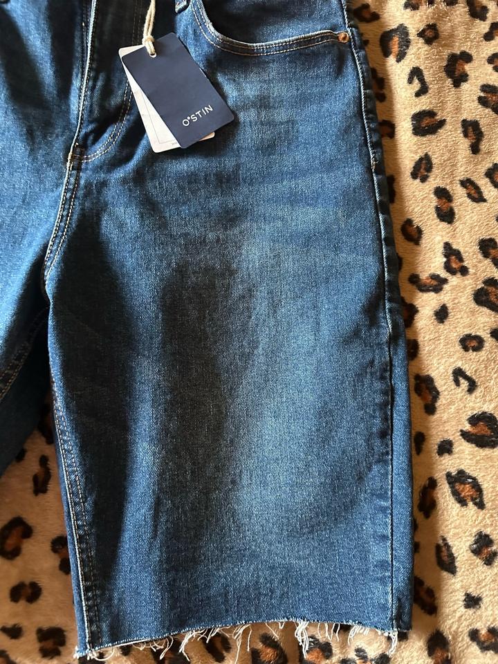 Удлиненные шорты, средней посадки, шикарного синего оттенка, из классного, качественного денима, на концах немного бахромы. Размер 44-46, М, фирма Ostin. Артикул: 595504
