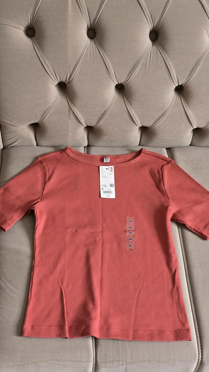 Футболка с ребристым вырезом-лодочкой и коротким рукавом. Хлопок. Очень приятный цвет Артикул: 595518