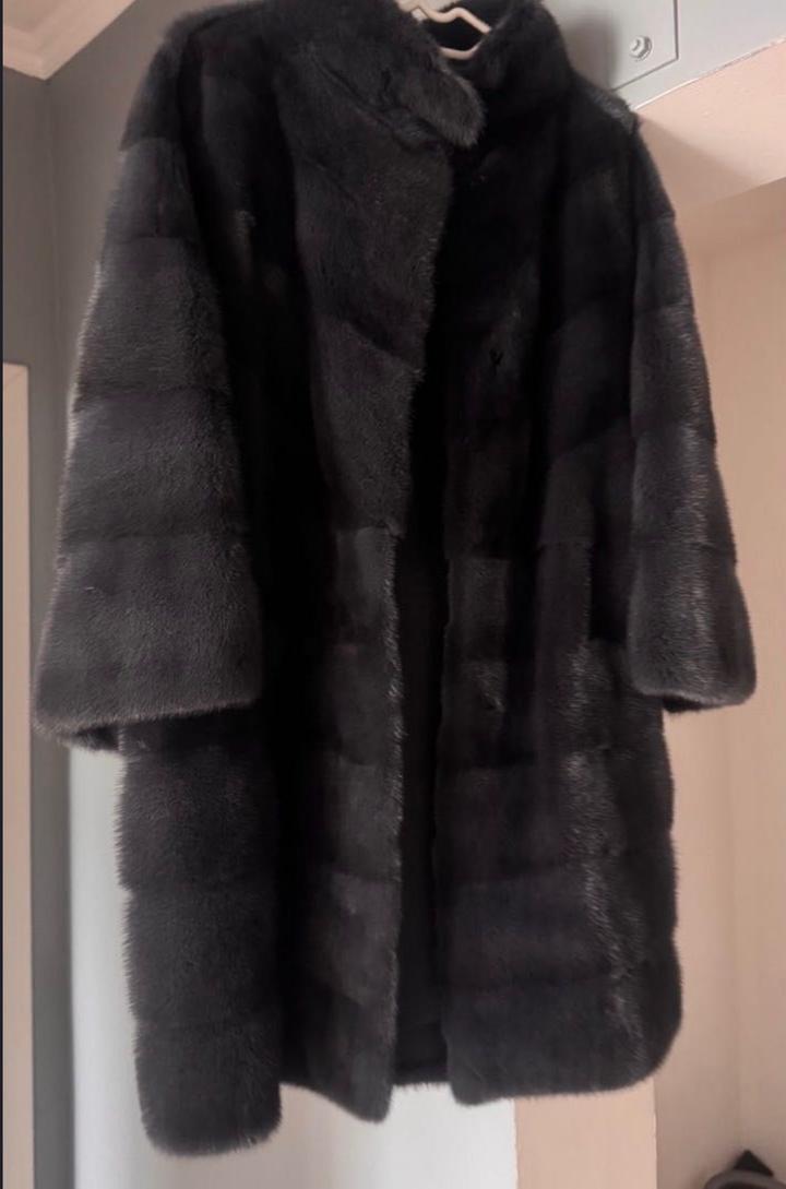 Oversize. Серая. Российский мех. Стойкий воротник на магните, застежки кнопки, рукава трапеция, длина средняя, карманы снаружи и 1 внутри. Шуба очень теплая и легкая. Шикарная шуба в отличном состоянии, дорого выглядит. Артикул: 595556