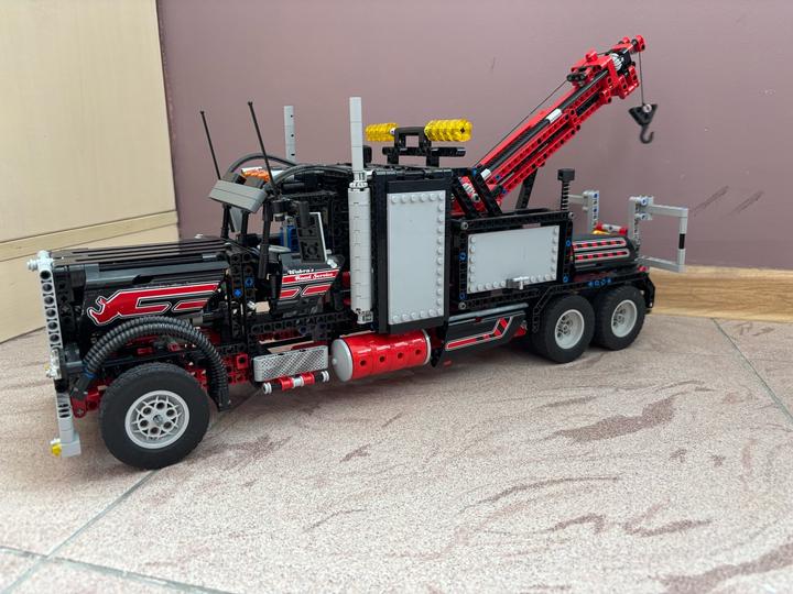 Грузовик Lego. 2075 деталей. В отличном состоянии, все мезанизмы работают, инструкции в комплекте. 2 детали заменены на такие же, толкьо другого цвета (с черного на серые). У этой модели кран металлический Артикул: 595641