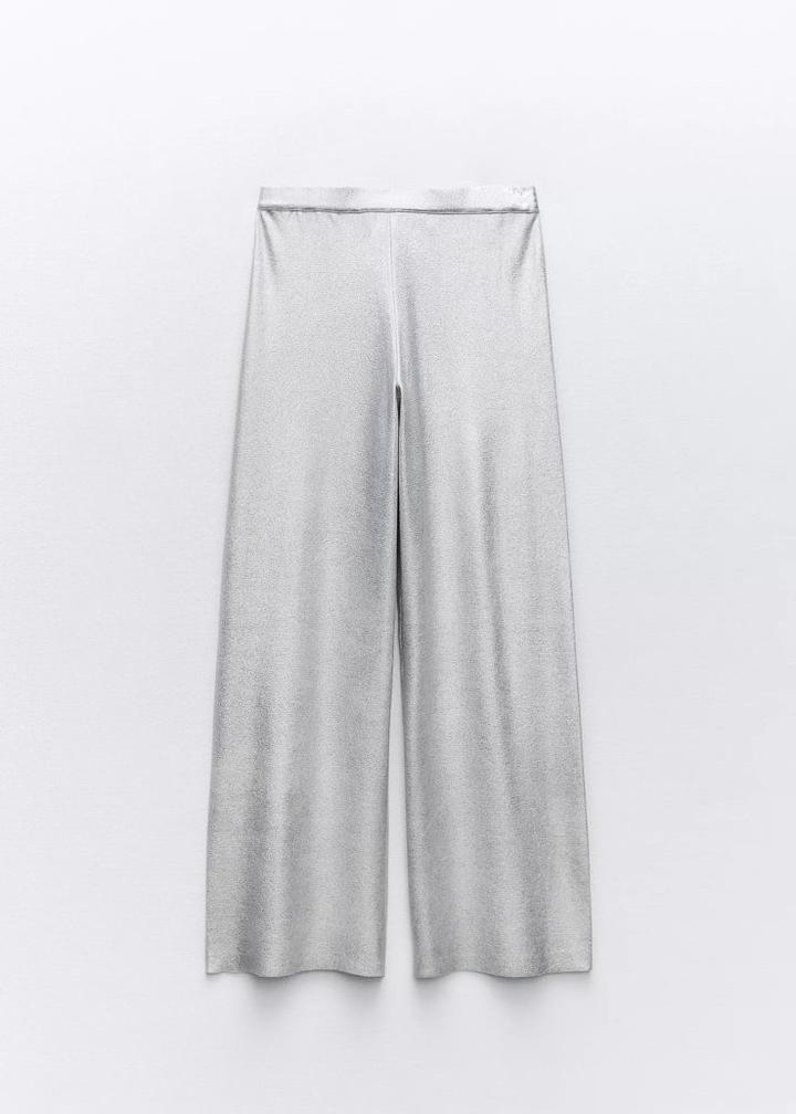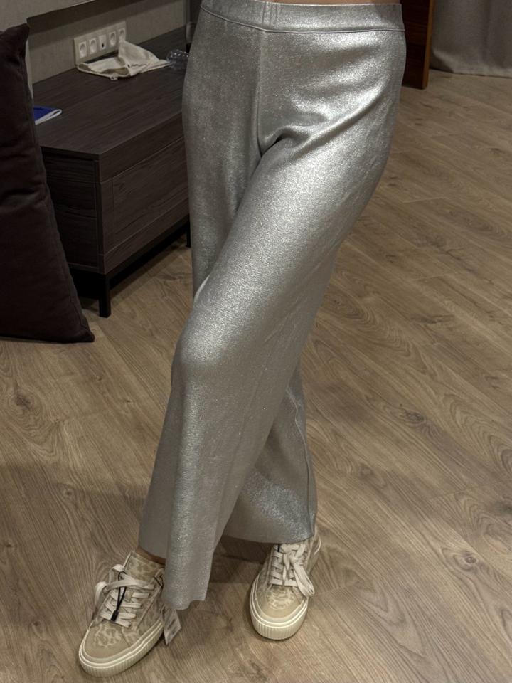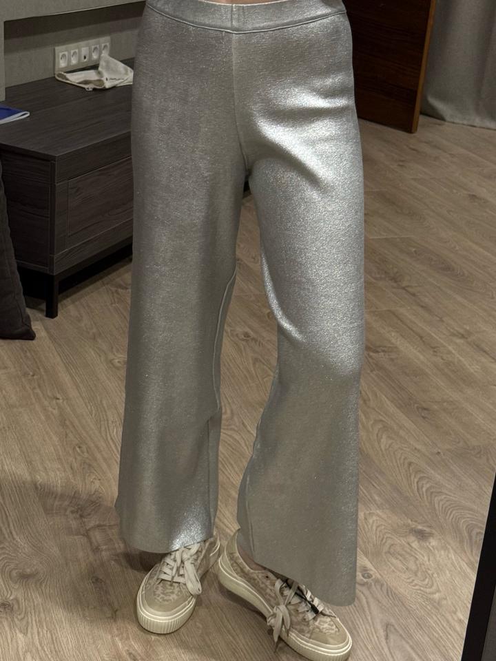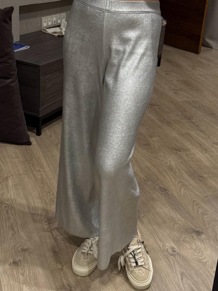 Брюки Zara из блестящего трикотажа с широкими штанинами, заказывали онлайн, не подошел по размеру. Больше подойдет подросткам Артикул: 595643