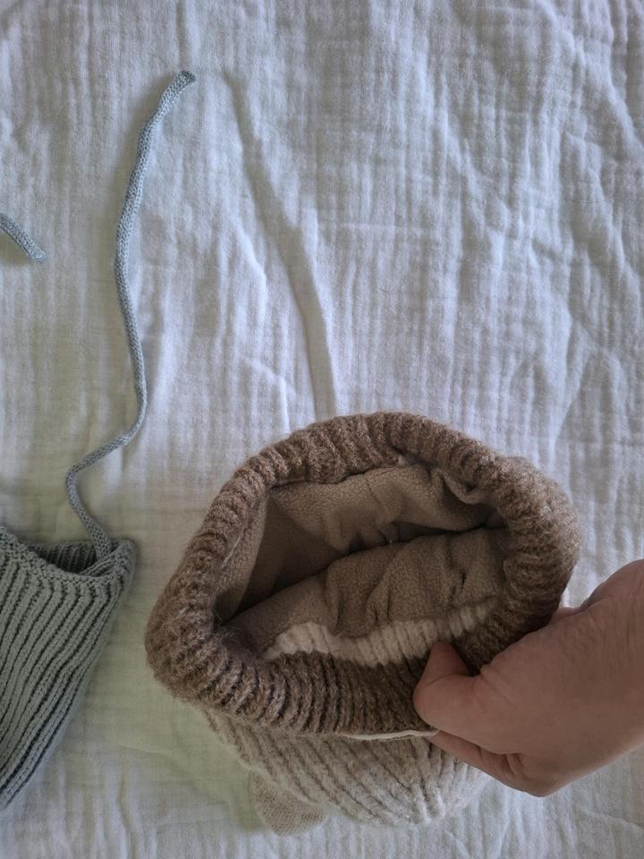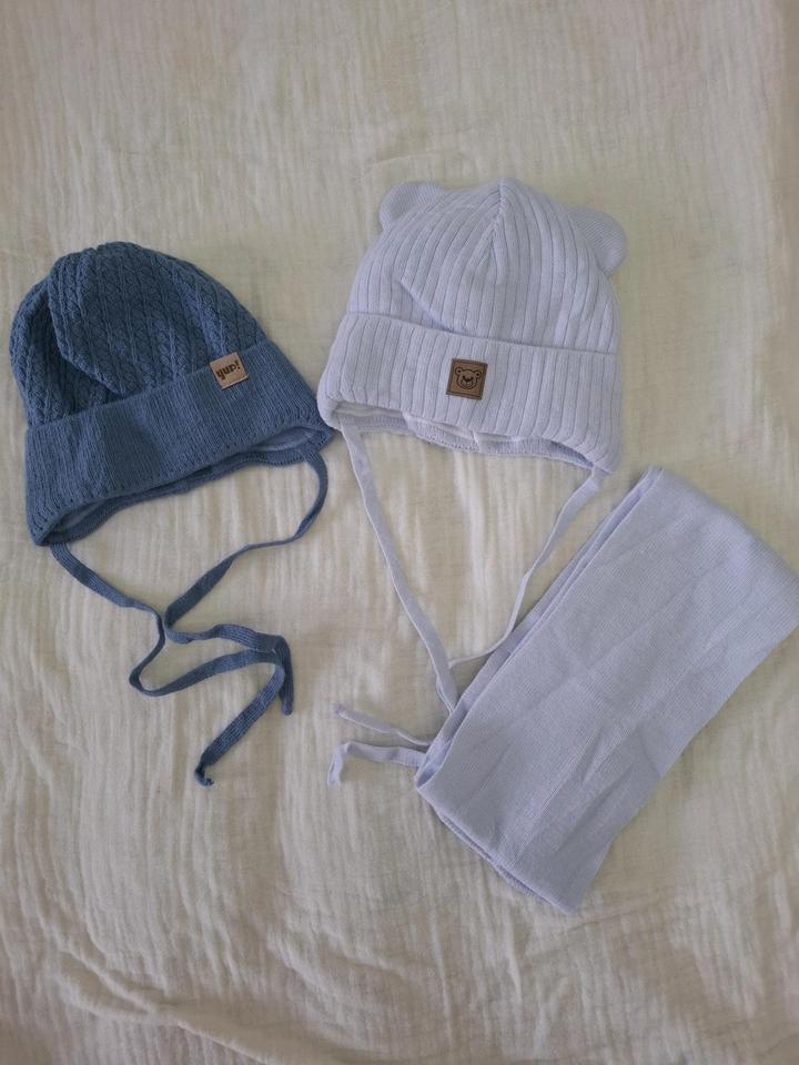 Шапка коричневая Waikiki зимняя с флиской - 700 Шапка серая baby go, демисезон с тонким подкладом. Хорошо закрывает уши - 500 Белая шапка турецкая демисезон. Хорошо закрывает уши и лоб - 1500 Шапка синия демисезон с тонким подкладом 800 Шапка с шарфом турецкая зимняя - 1500 Шапки комплект 3 шт от бренда Next - 900 Чепчики - 1000 за все Артикул: 595720