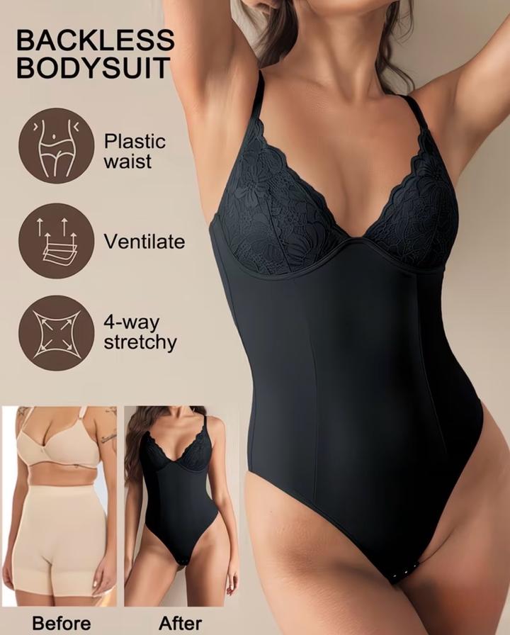 Боди утягивающее с открытой спиной 🔥Мягкая утяжка — подчёркивает талию и сглаживает живот ✔️ Чашечки с кружевом — красиво оформляют зону декольте ✔️ Эластичный материал — тянется и комфортно сидит по фигуре Подойдёт как на каждый день, так и под особые Артикул: 595795