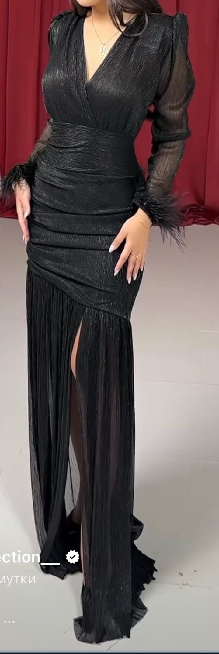 Limited collection Платье из люрекса с декоративными перьями на манжетах. Размер: 50 Премиальное качество — Турция Покупала за 65.800 тг, одевала 1 раз. Артикул: 595851