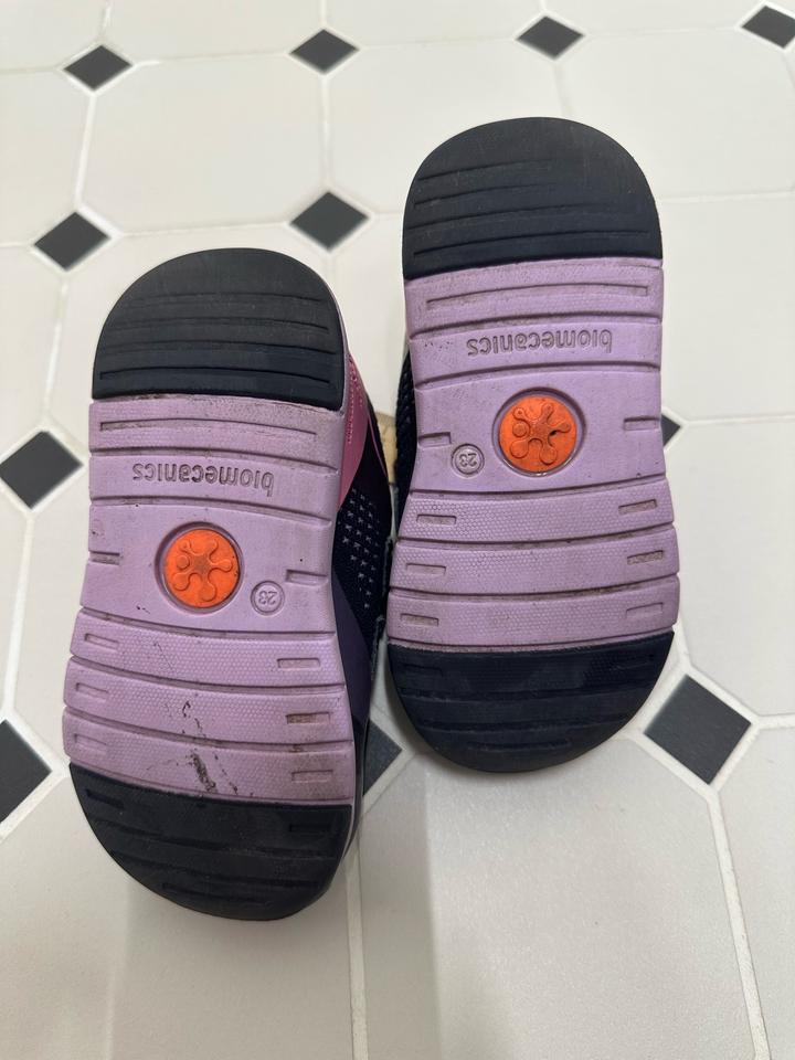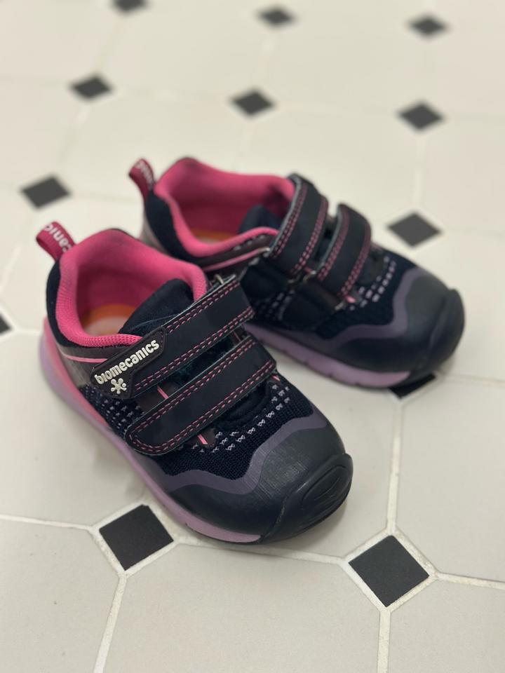 Кроссовки испанского бренда Biomecanics, в хорошем состоянии, размер 23 - по стельке 14.5 см. Цвет лиловый (основной) и фуксия. Качественная обувь для здоровых ног детишек. Покупали в магазине Uti-puti. Есть коробка. Артикул: 595853